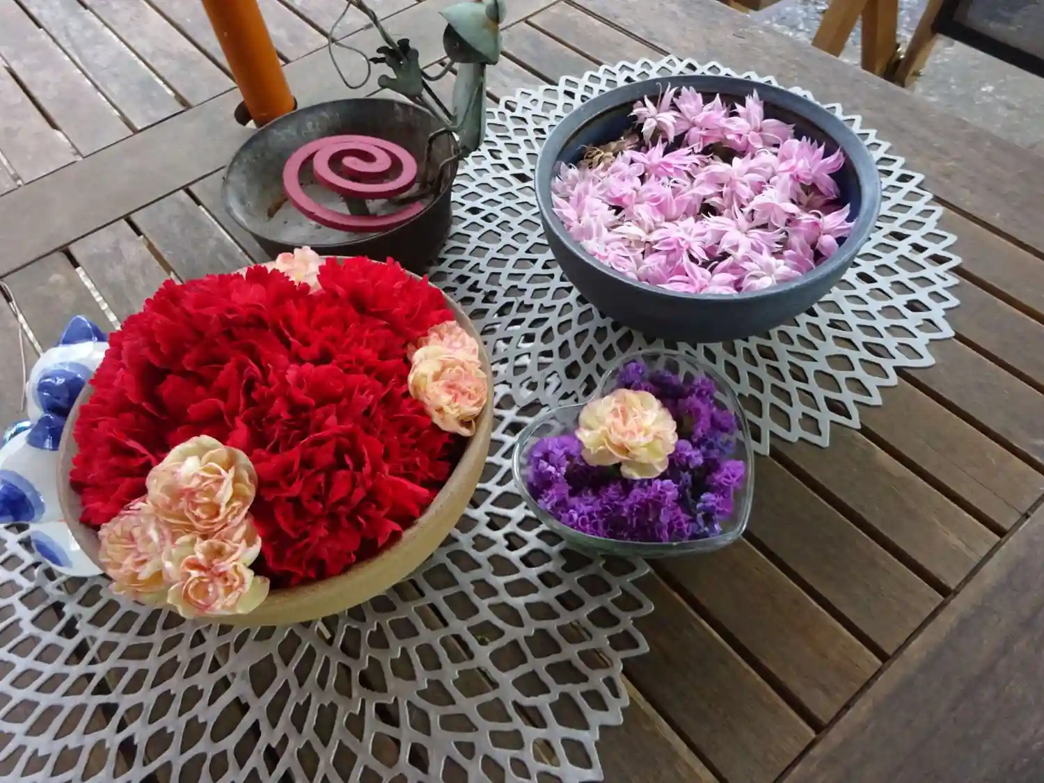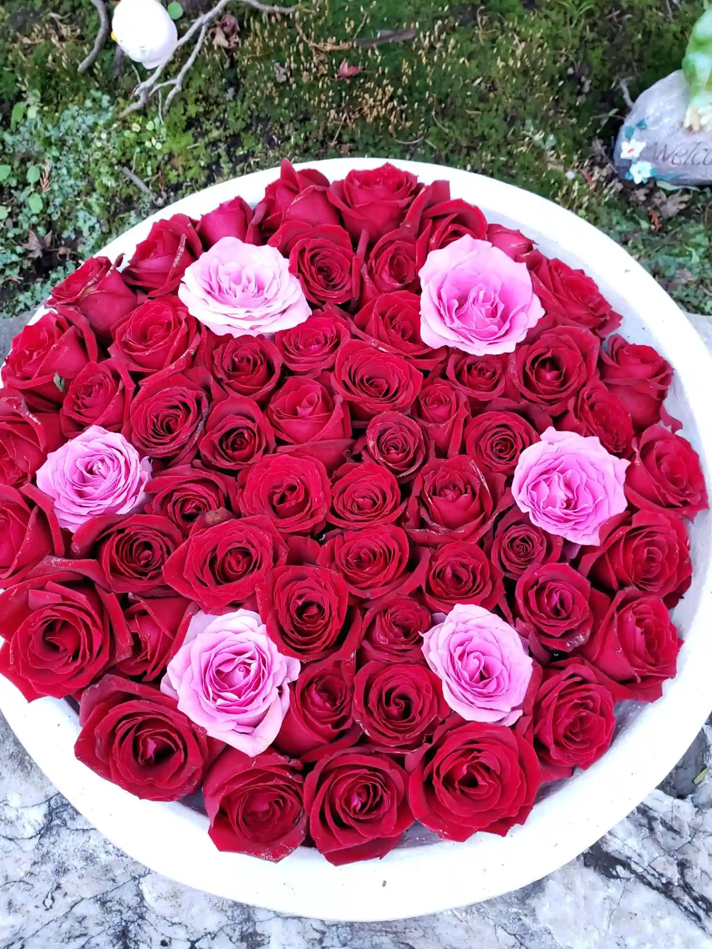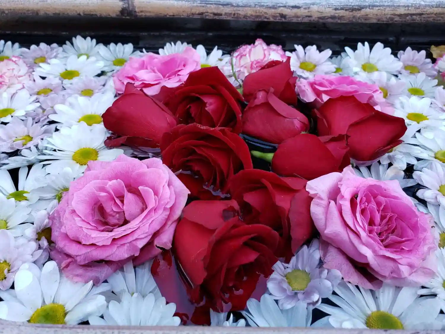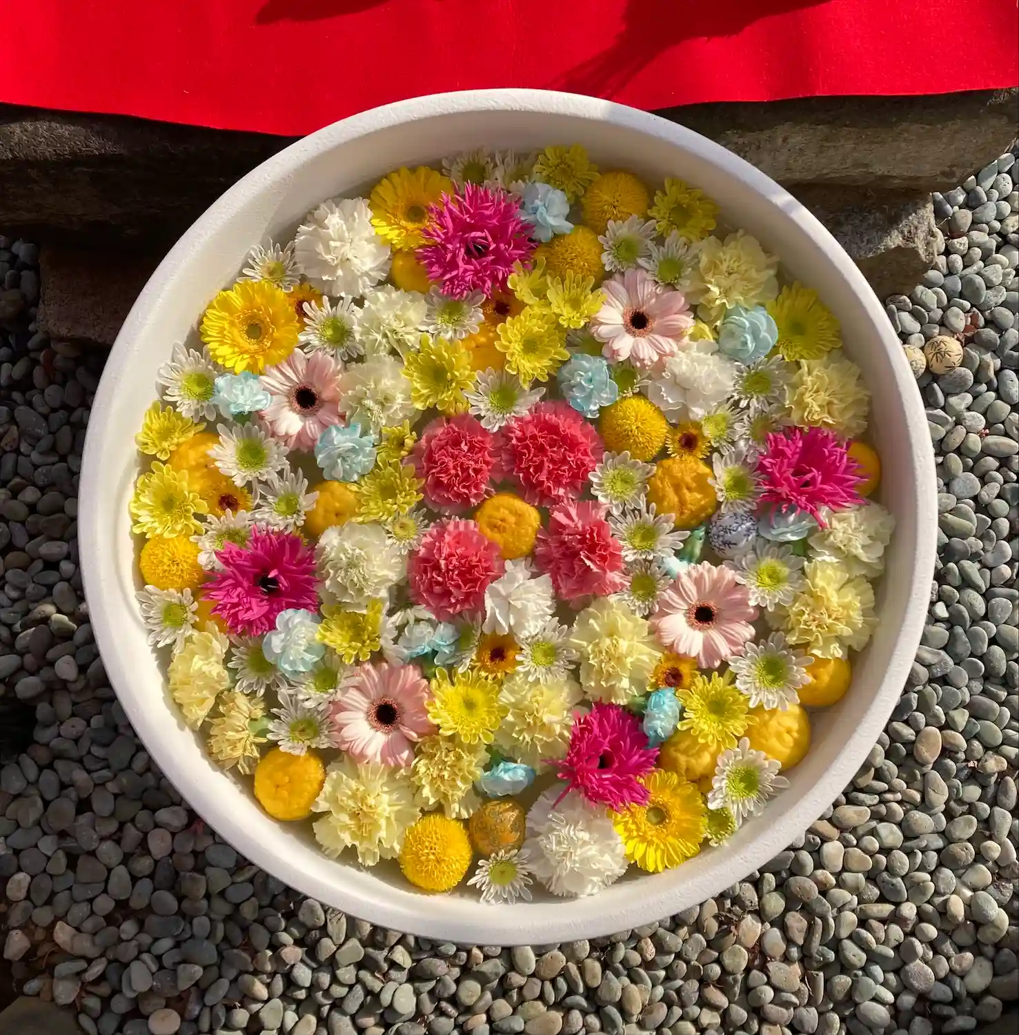 ご住職様が”お風呂花手水“と呼んでいる器には、赤を基調にしたバラ🌹の花が盛り沢山でした😆