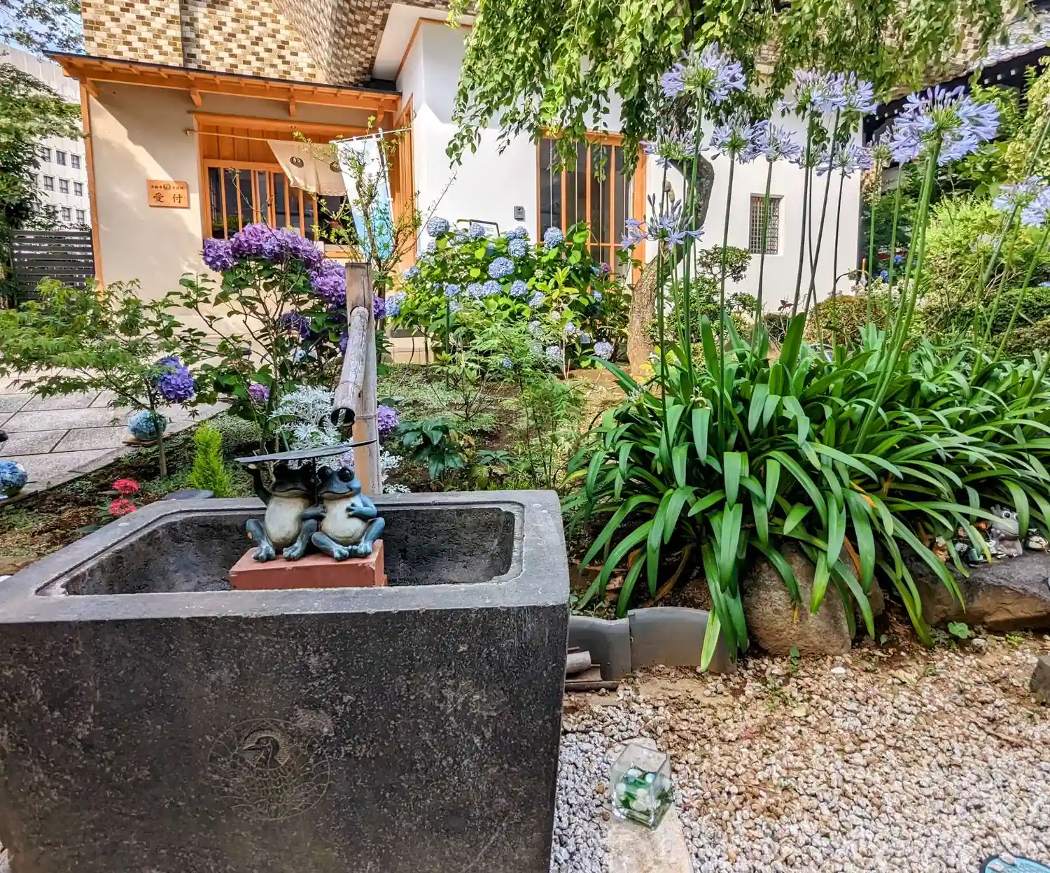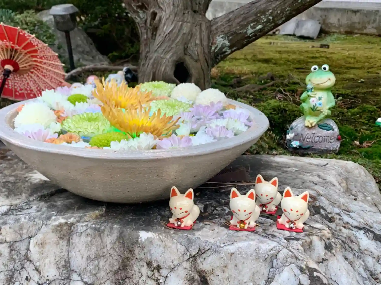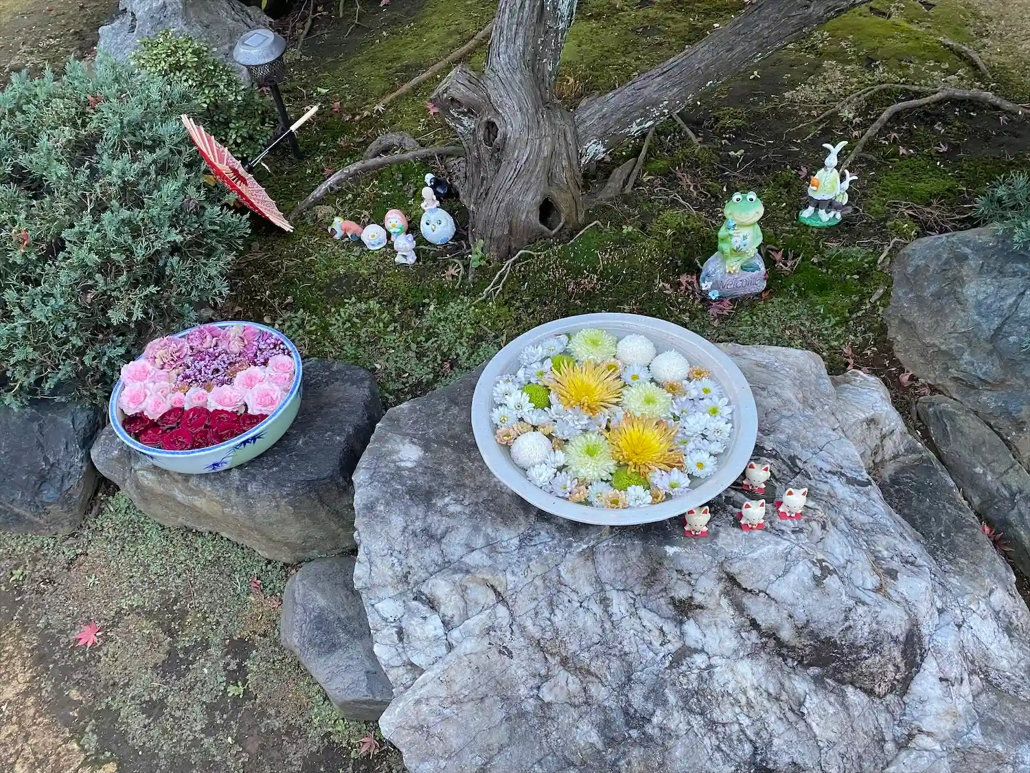カエル🐸さんの手水鉢にウサギ🐰さんも加わりました😆