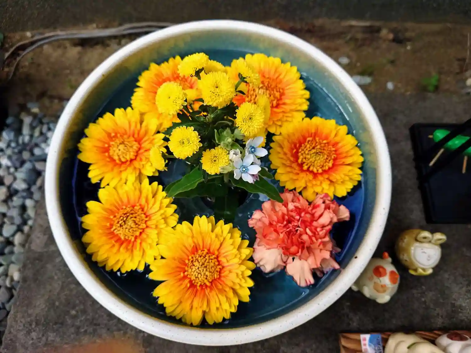 🌼休憩スペースの花手水🌼