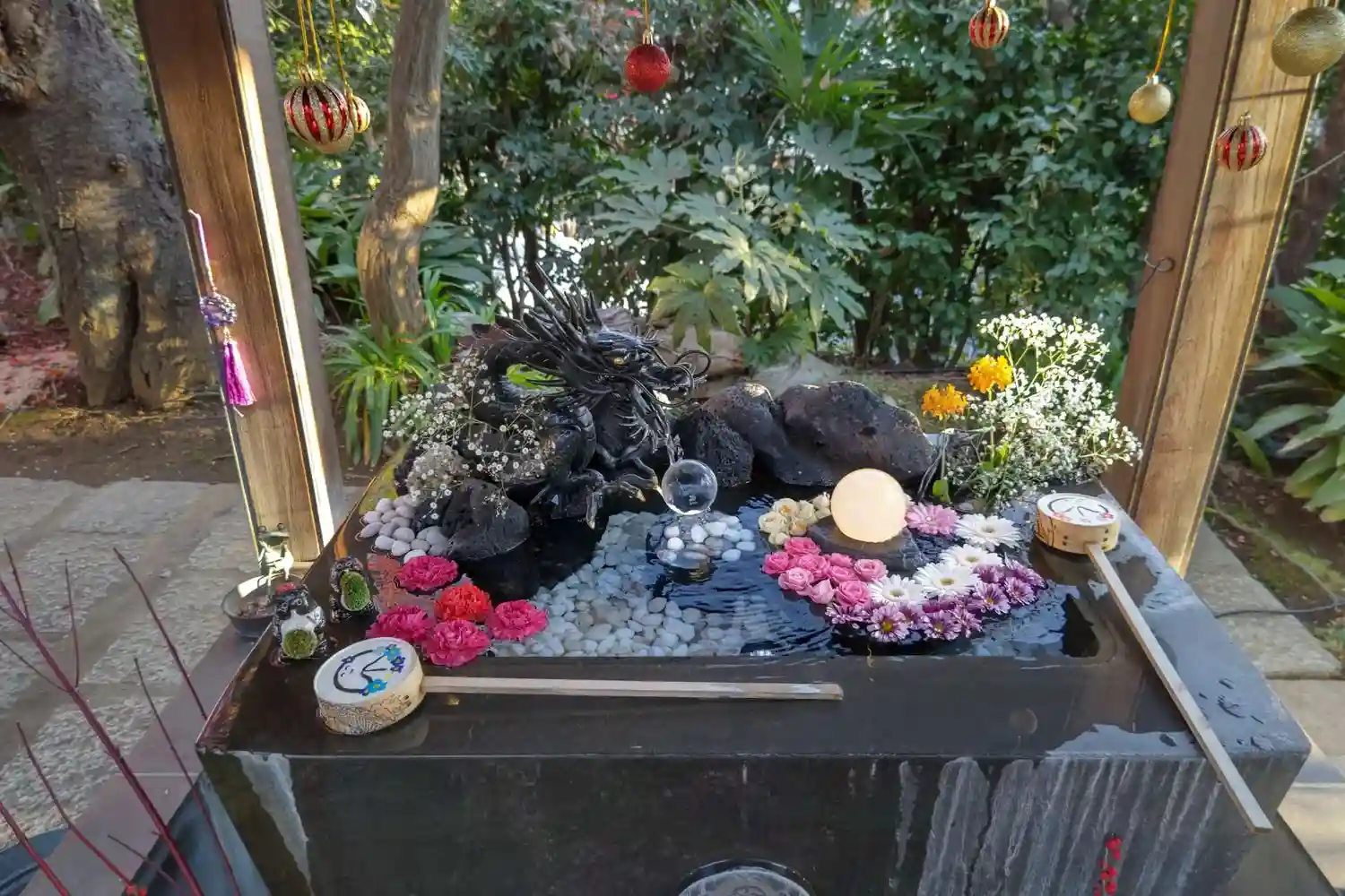 綺麗に飾られた手水^^