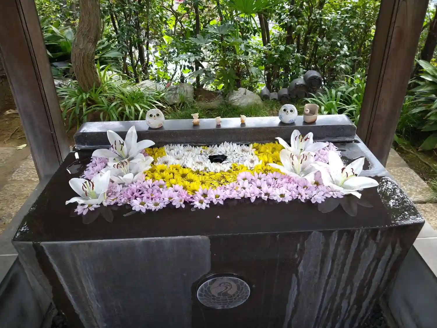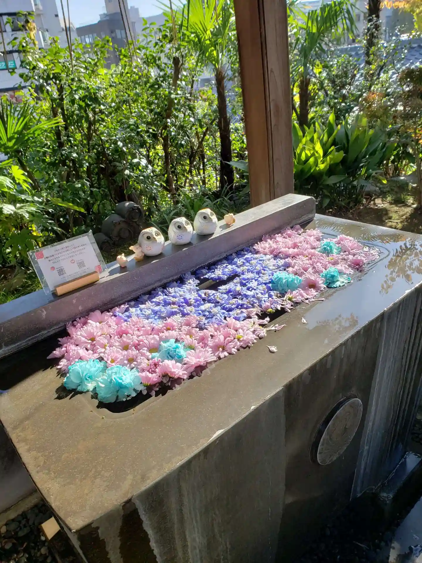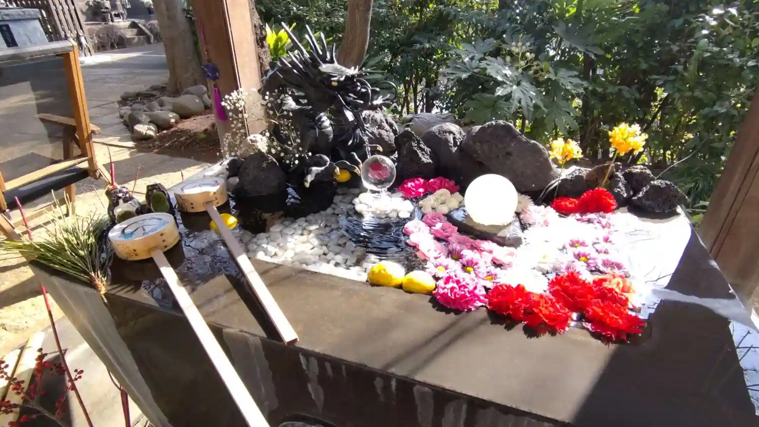 ☆手水舎☆ 風が吹くとお花がユラユラと移動していました