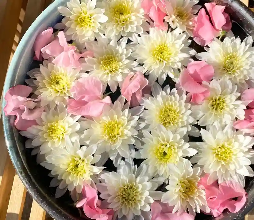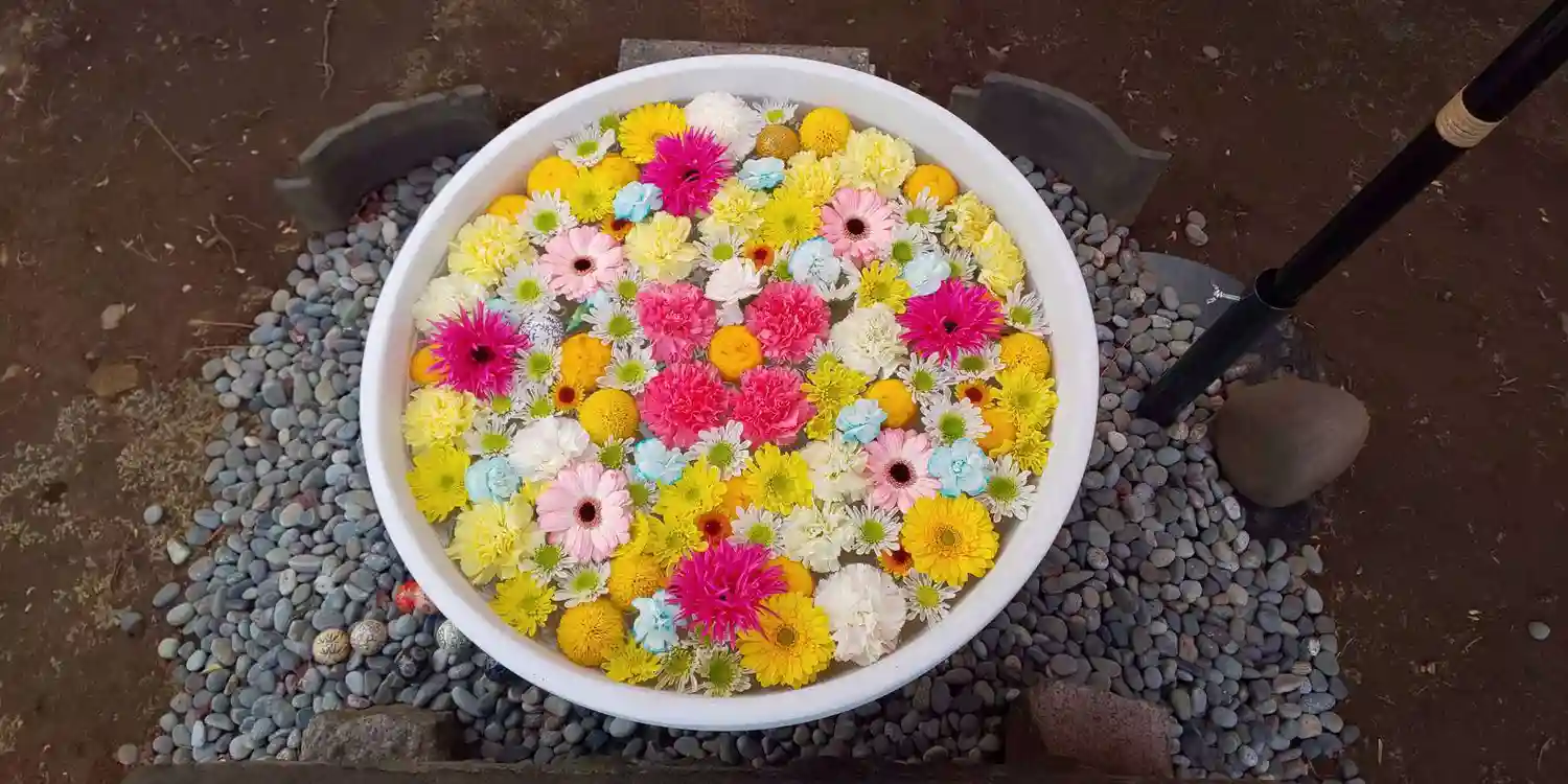🌼御本堂前の花手水🌼