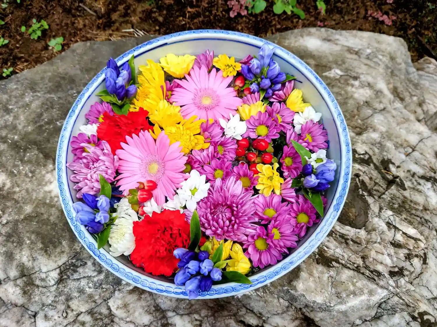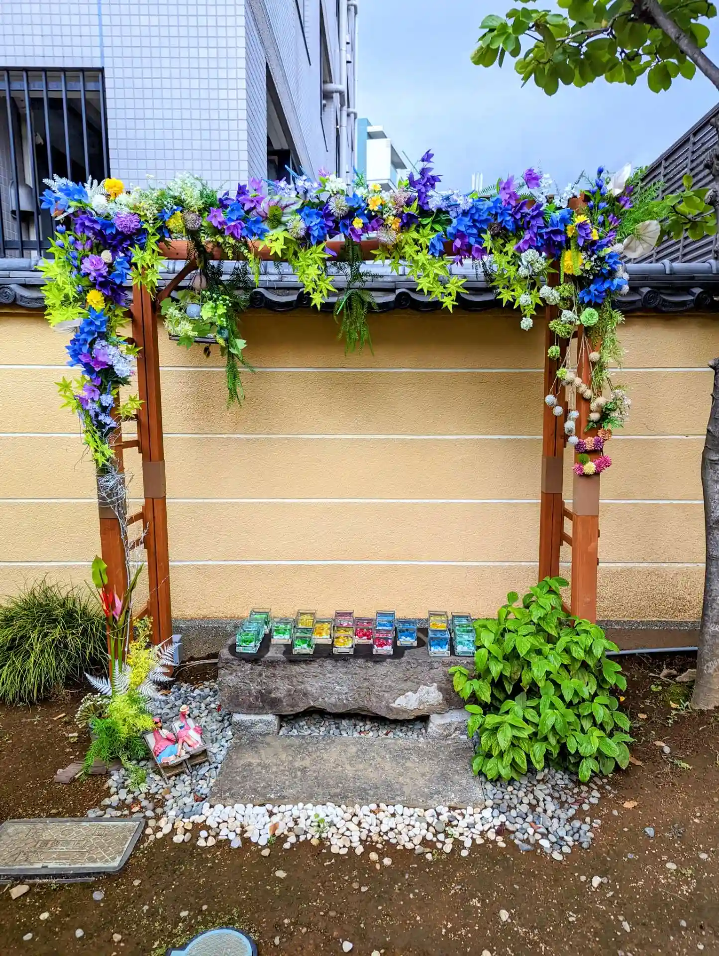 山門の花手水