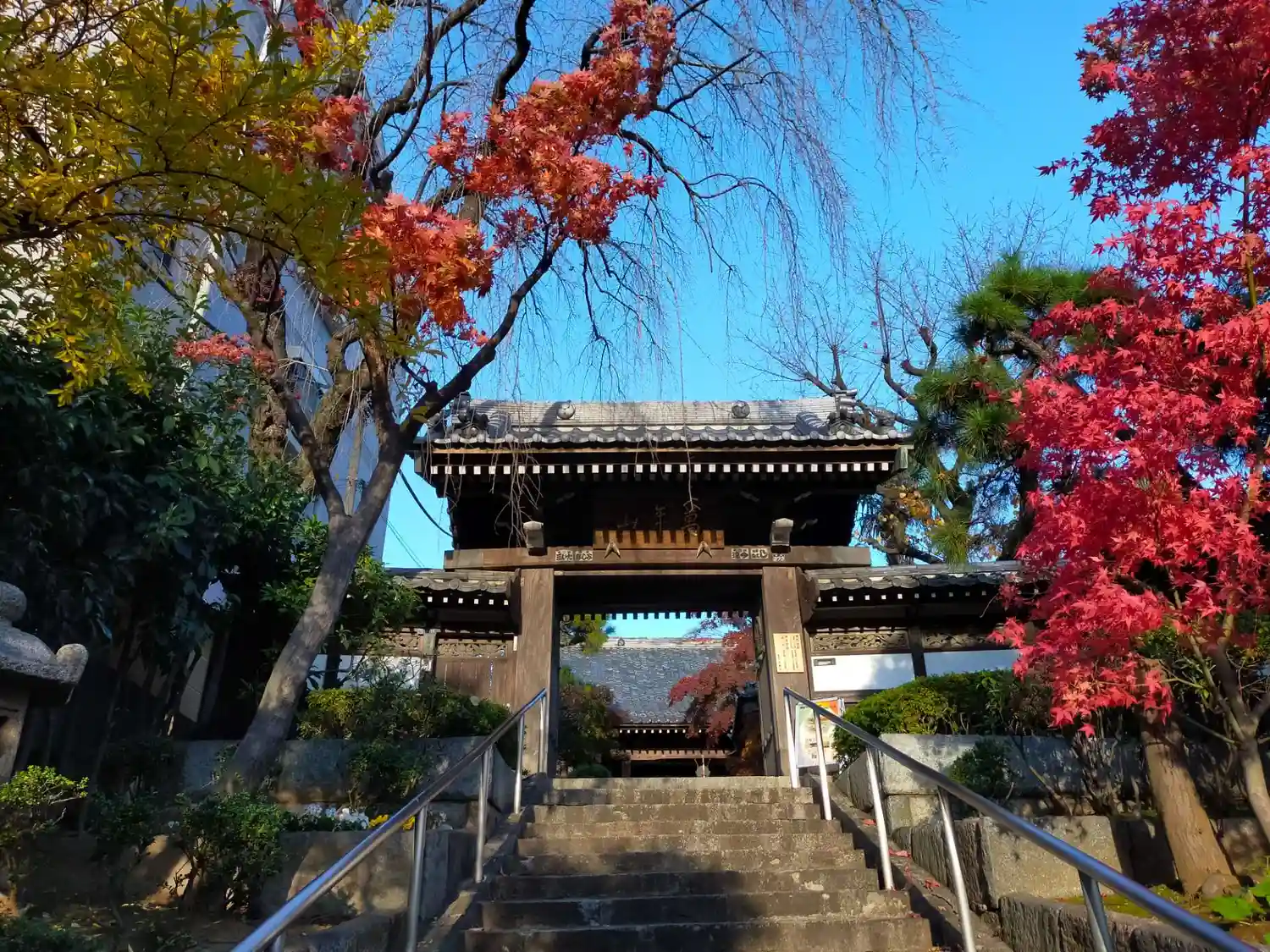 お寺さんらしい門構えと長い階段が荘厳な雰囲気を出しています。
