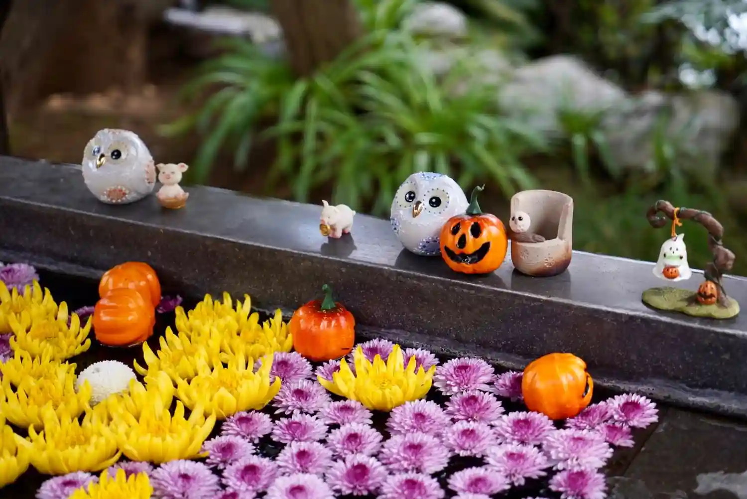 境内のいたるところに花手水が🌸🌼🌺