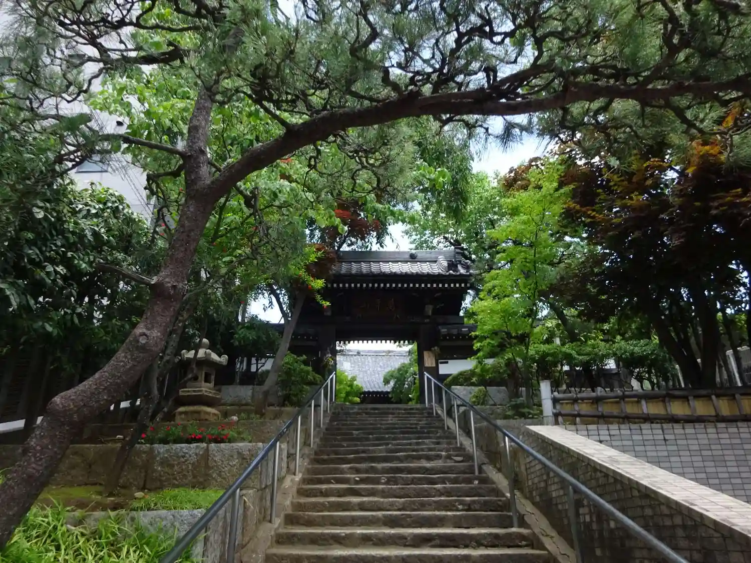 階段を上がって山門