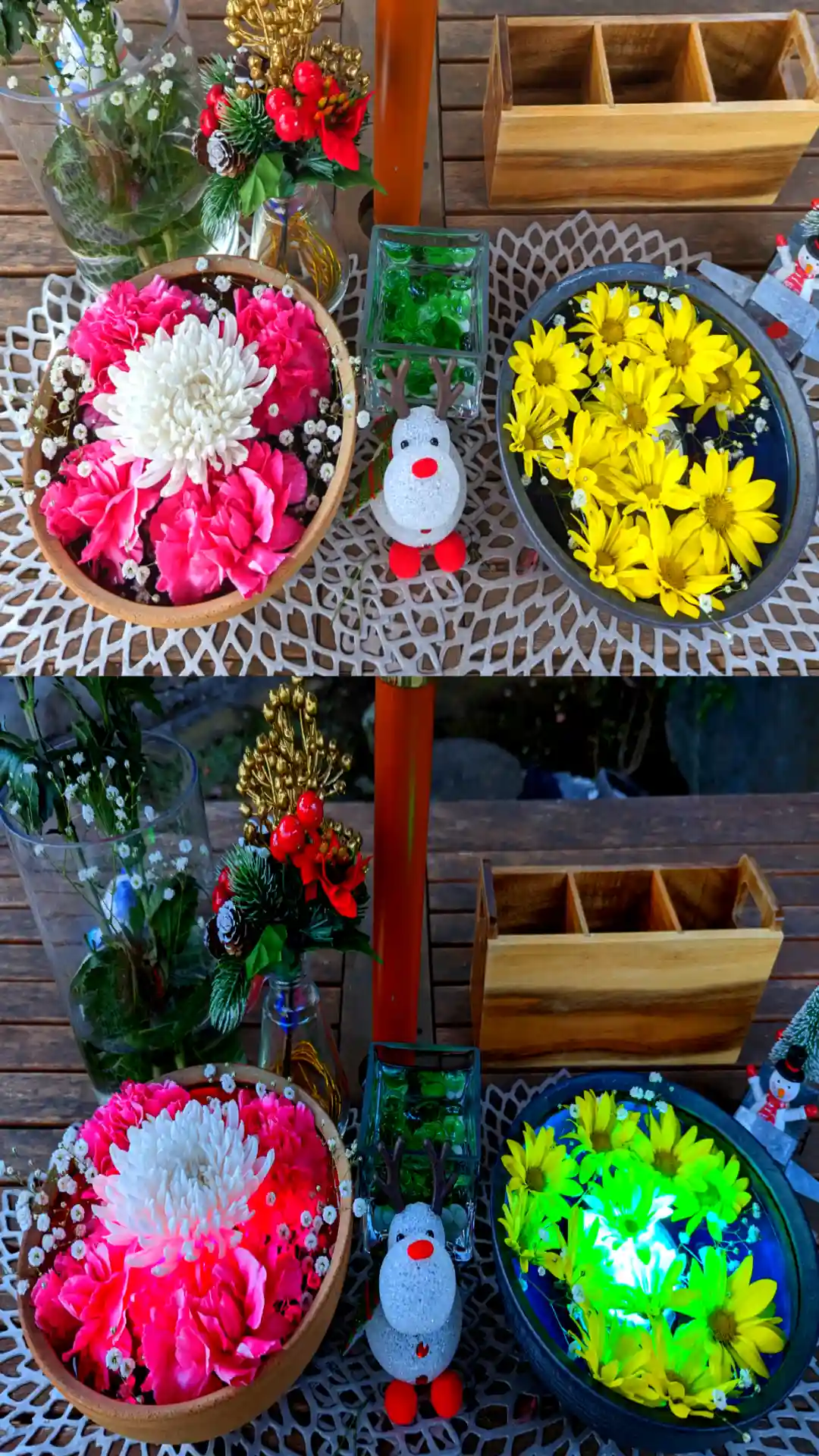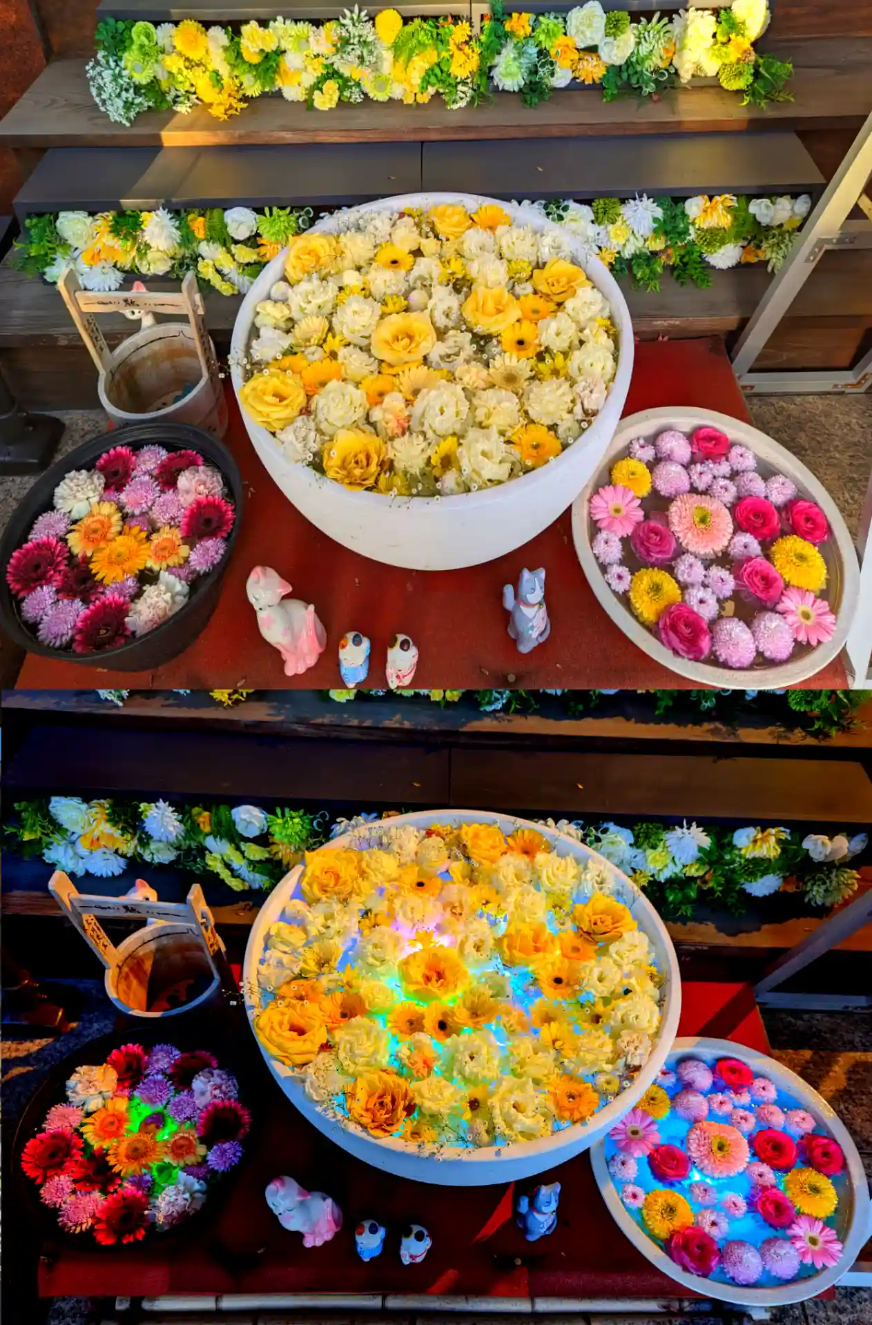 ☆花手水☆ 上段 ライトアップ前 下段 ライトアップ