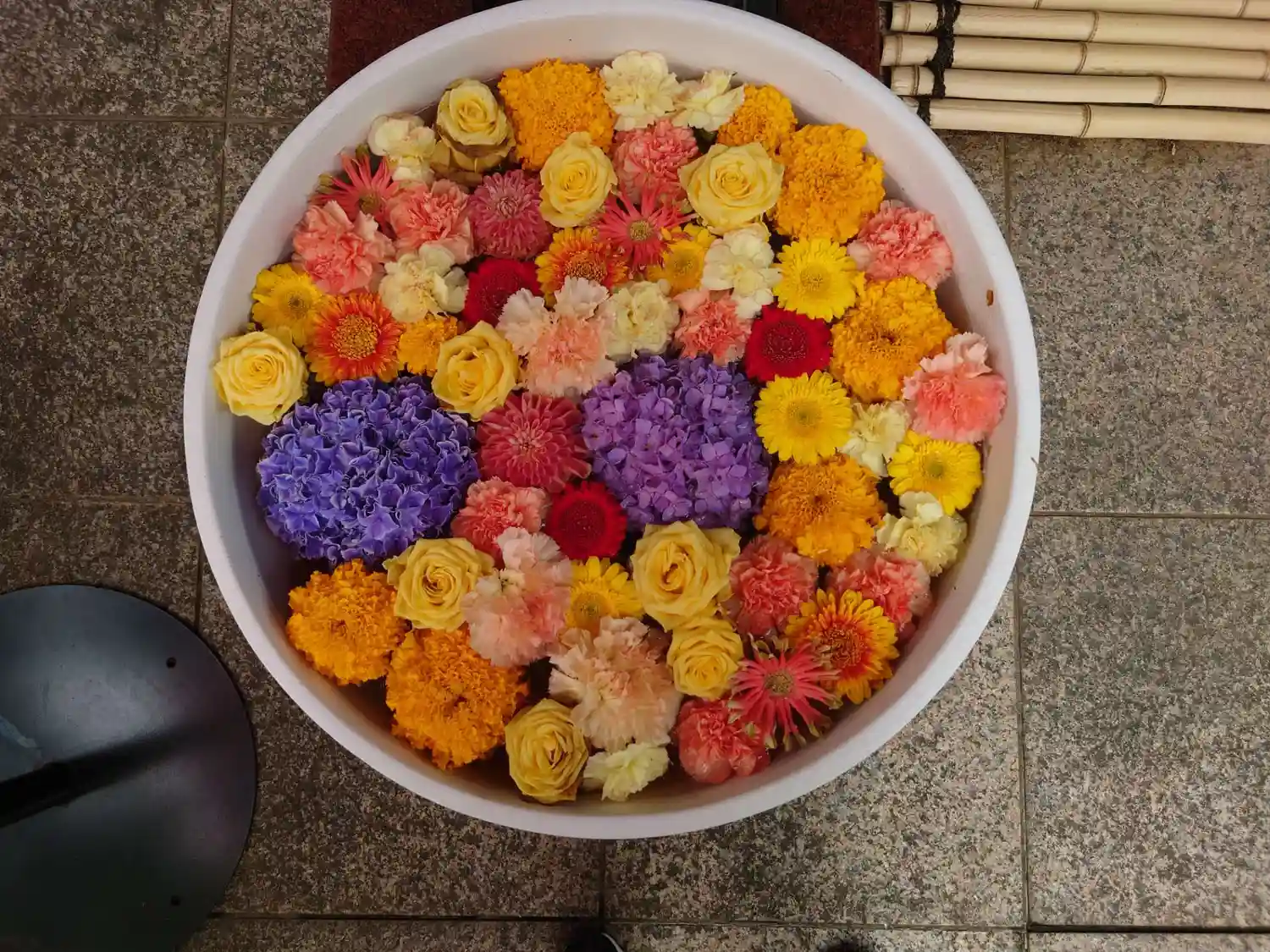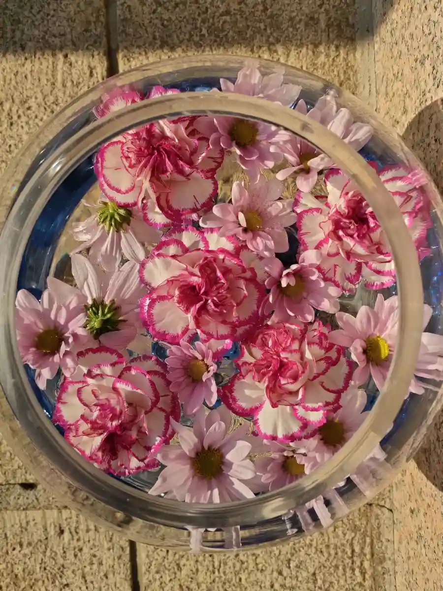 🌼御本堂から寺務所の間にある花手水🌼