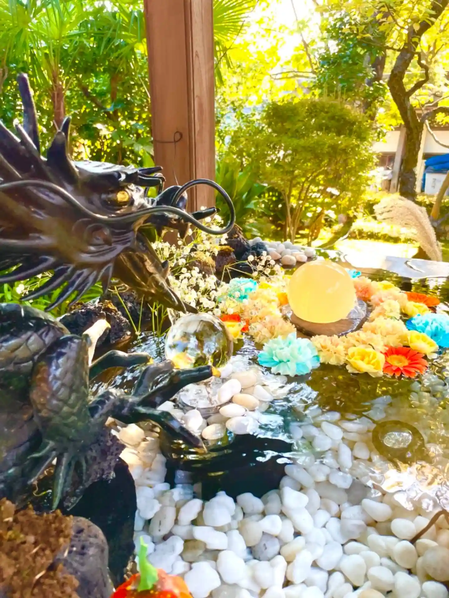 テレビで拝見し一度行ってみたいと参拝させていただきました。 天気も良かったことからお日様と水と花…