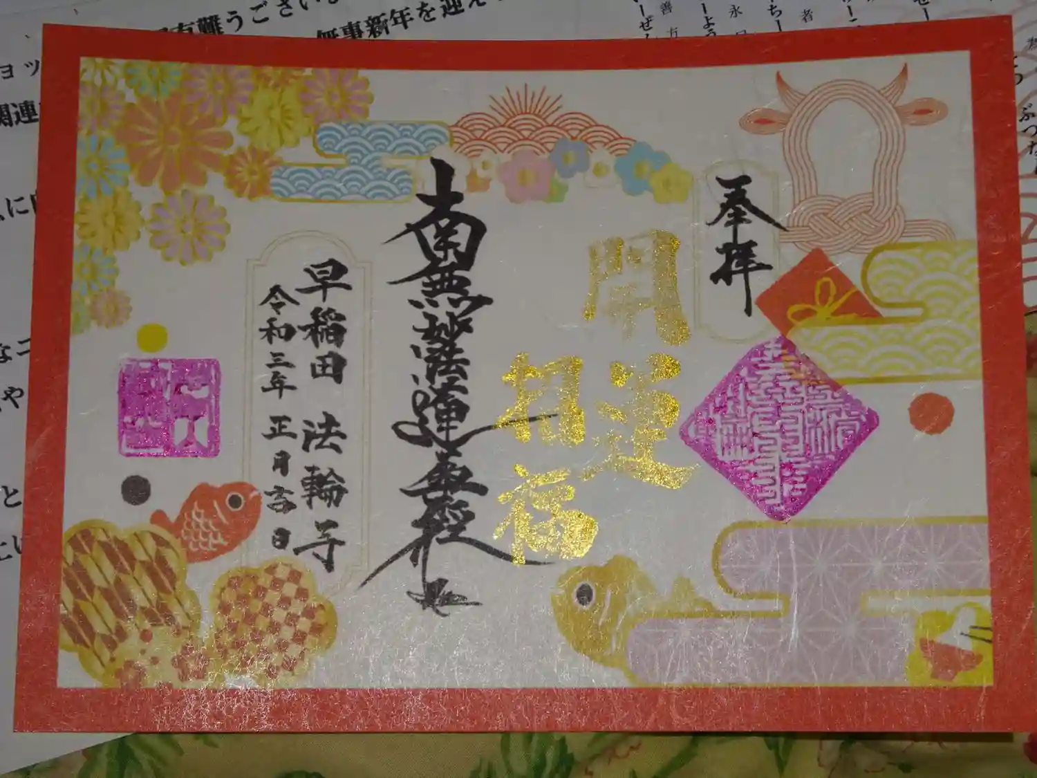 新年に相応しい明るいデザインの御首題^^