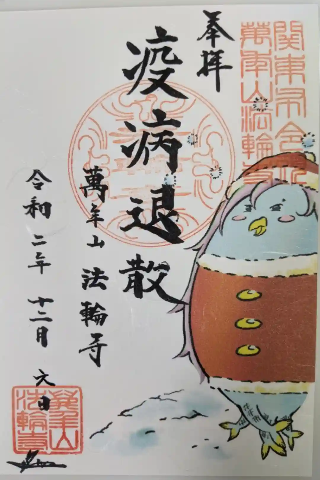 新型コロナの一日も早い沈静化を祈念してアマビエの疫病退散御朱印にしました。