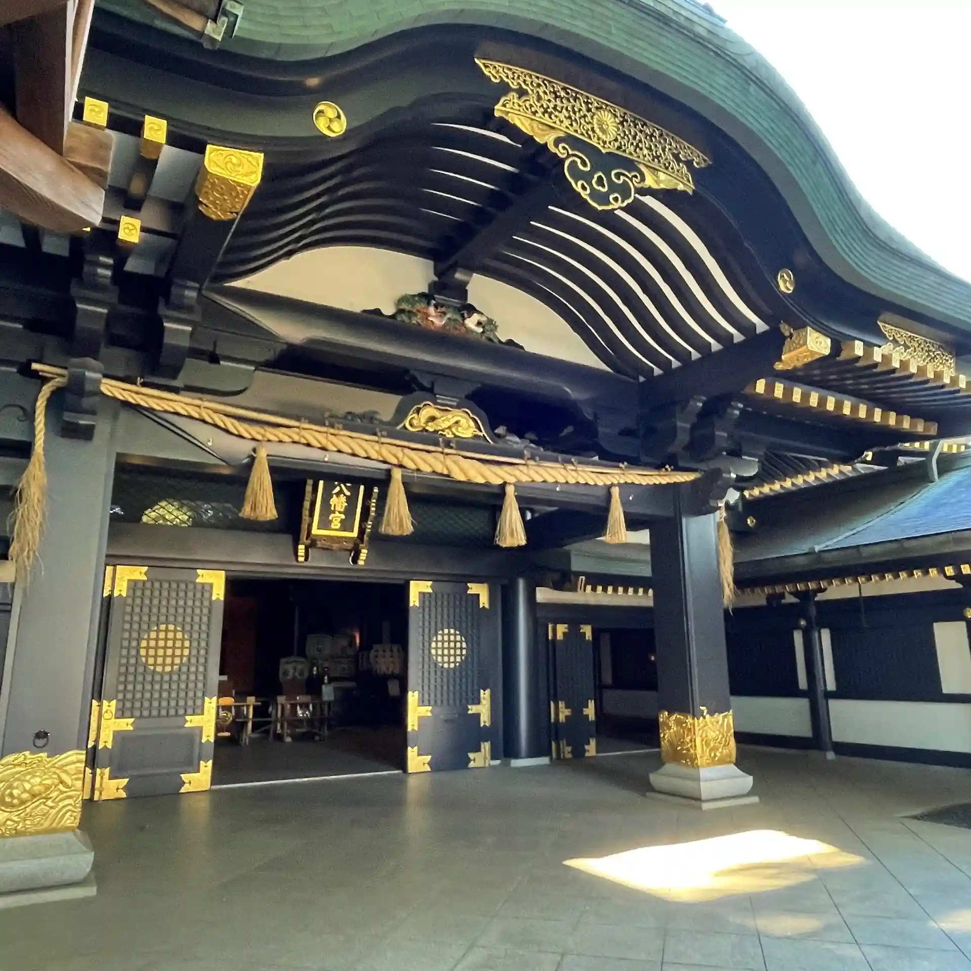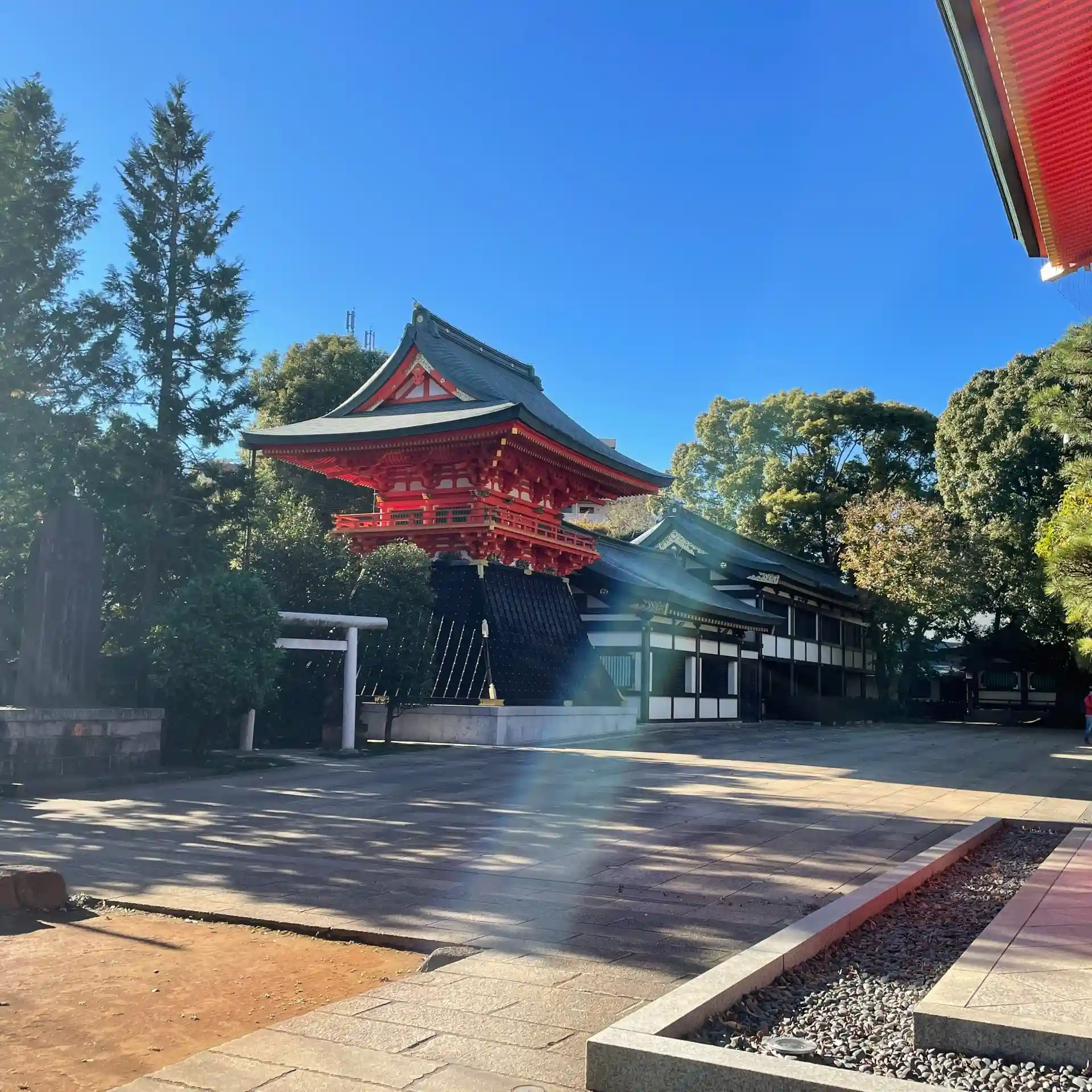 黒い社殿がカッコ良い神社です。階段下には紅葉が色づいており、とても綺麗でした。