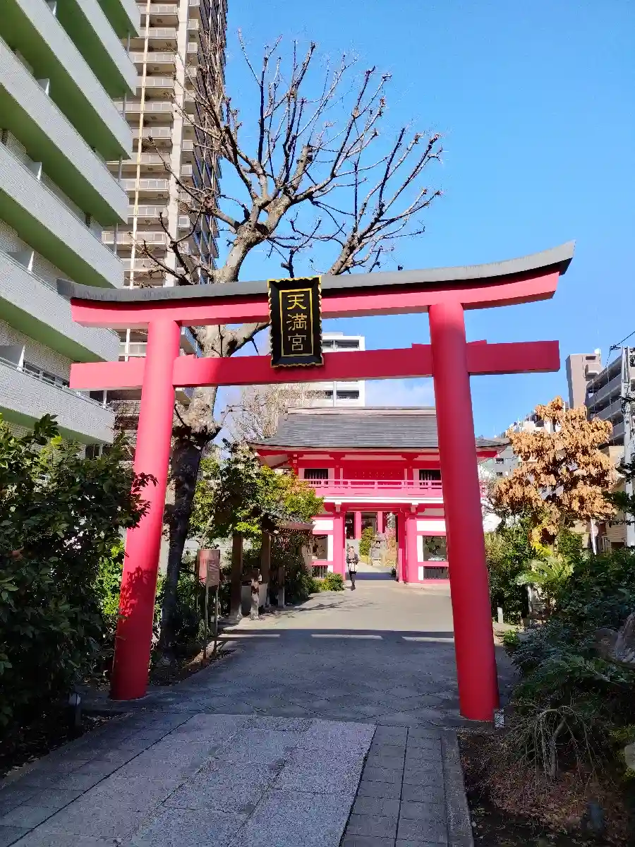 御由緒:閑静な緑なす都会のオアシス天神様、古来より、厄除と受験合格の神と親しまれながら、時代の流れと共に近代的高層ビルの直下、見上げれば正にパノラマの絶景、そんな調和に溶け込んだ境内、時が移ってもずっと守り続けたいものです。(東京都神社庁HPより)
