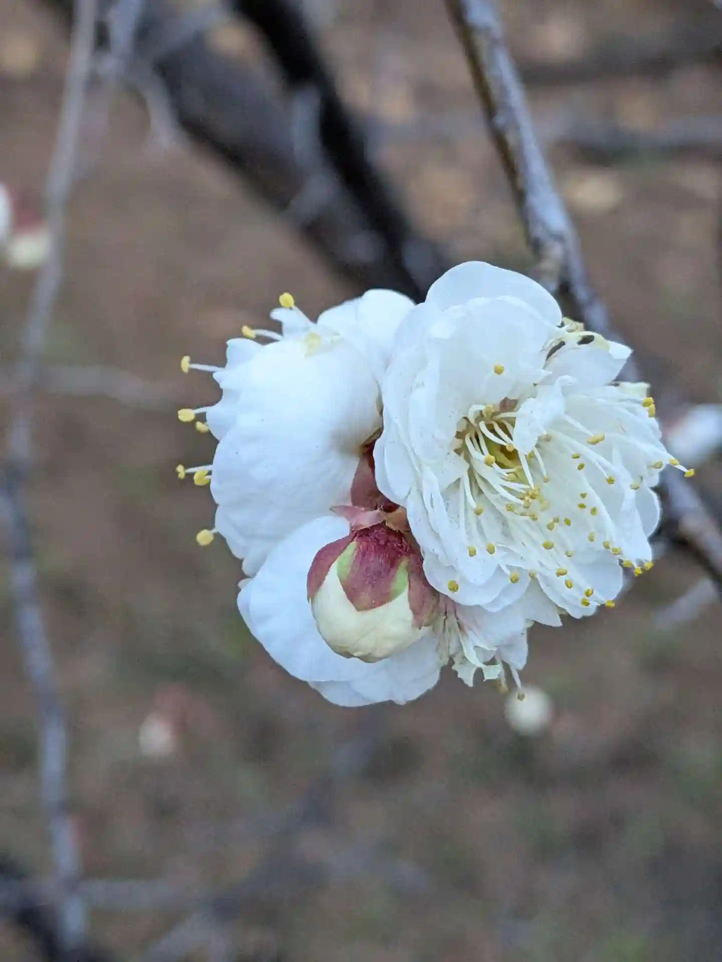 社務所前の白梅も咲き始めていました。
