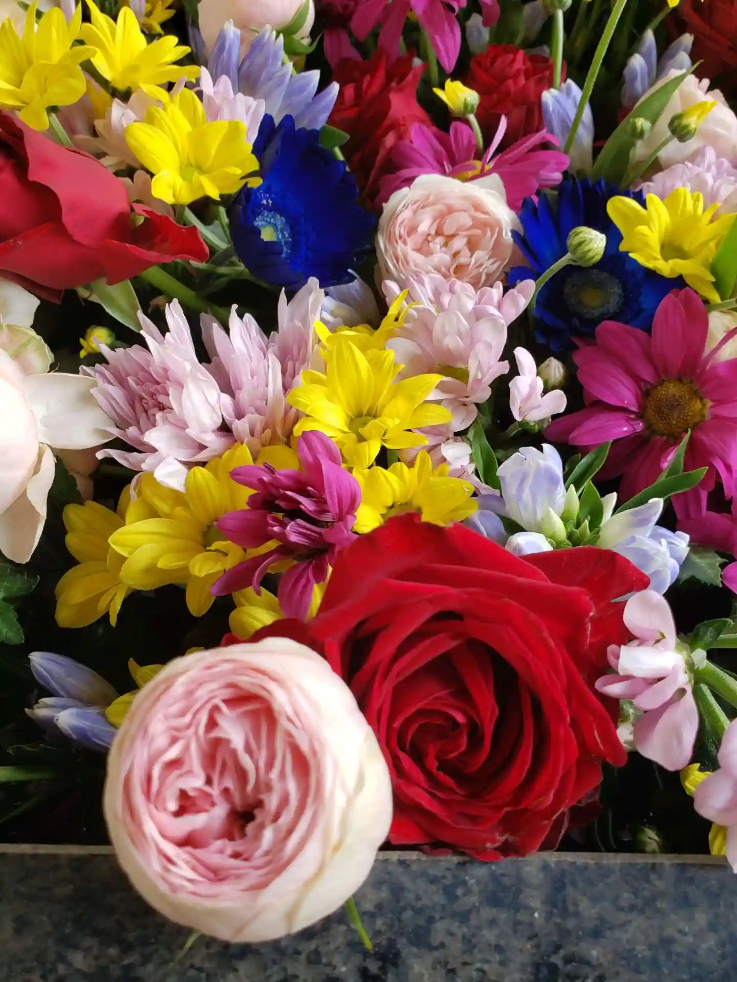 地元の神社でこんな素敵な花手水が〜🌸🌼🌸(常時ではなくて、定期的でも無さそうです)