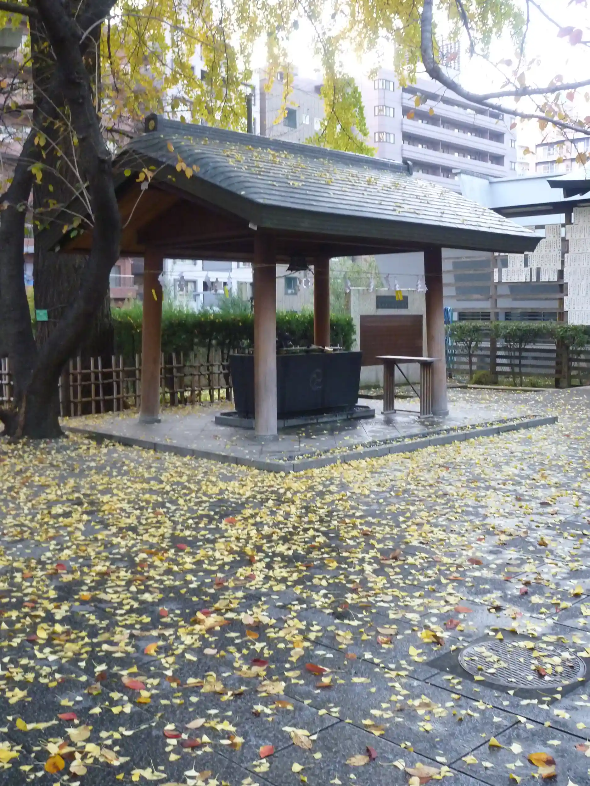 中央公園の傍らに鎮座。銀杏が綺麗な神社でした。神社からビル街が見えるのが面白いです。[2009秋]