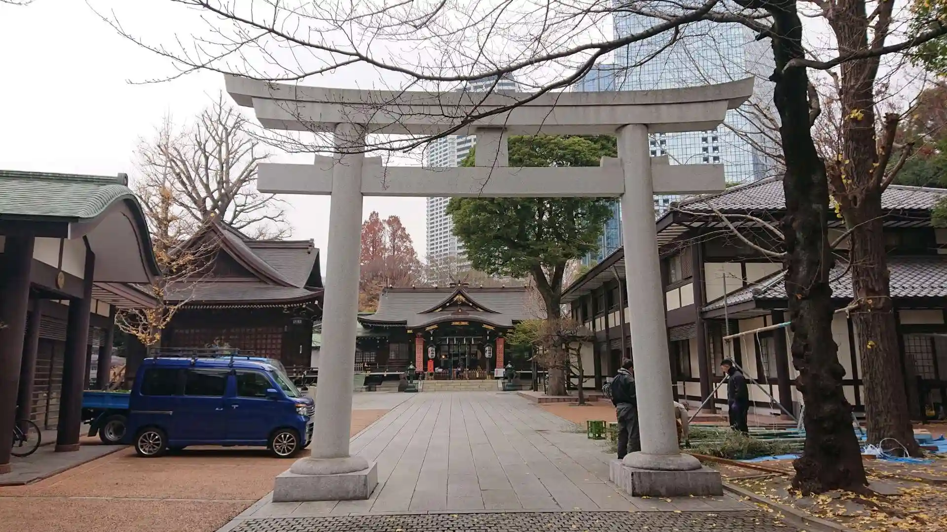 新宿中央公園にある神社です。切れ目なく参拝される方がいらっしゃいます。