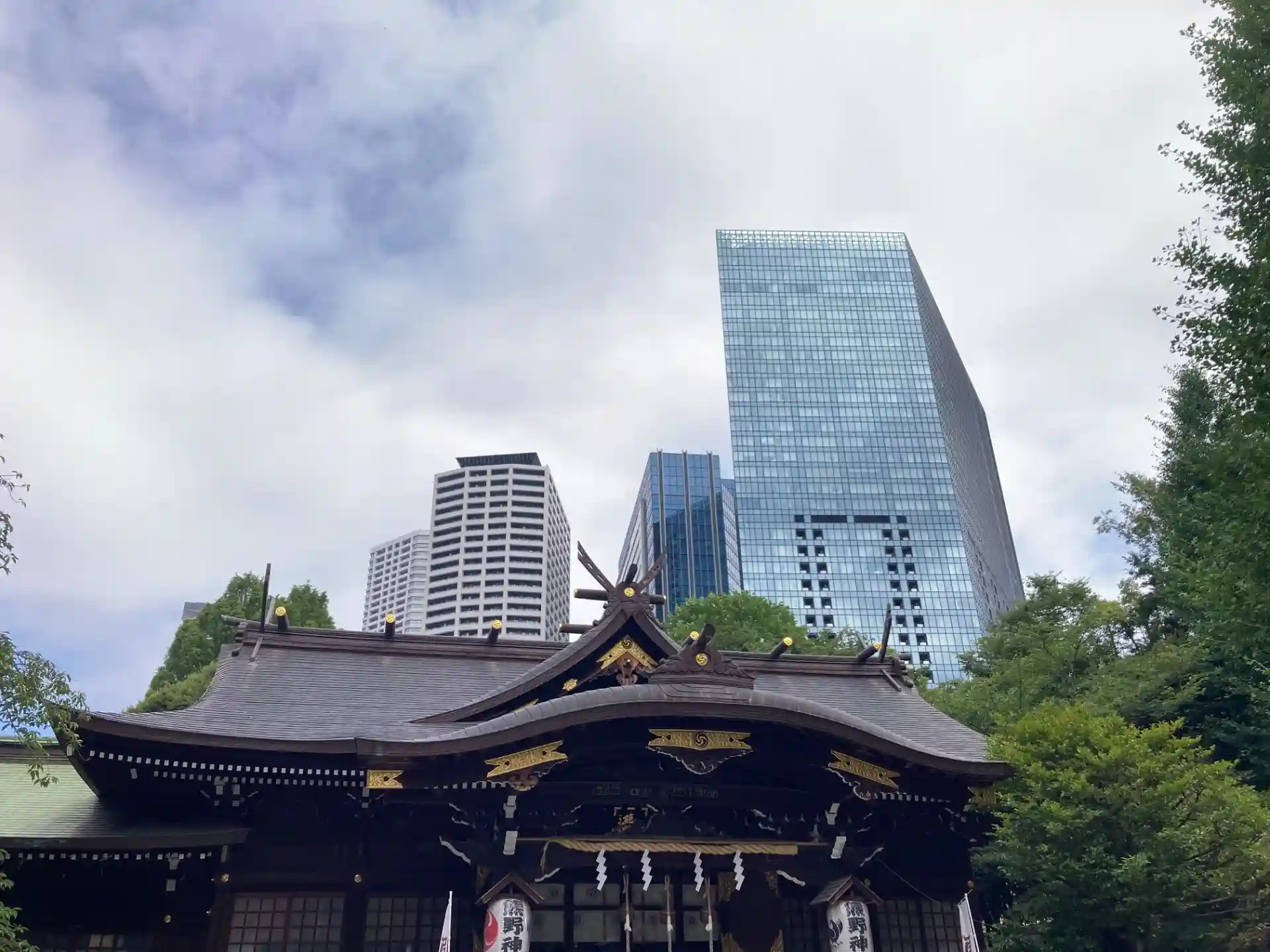 氏子町の範囲が西新宿、新宿駅周辺、歌舞伎町エリアで新宿の総鎮守であることを、拝殿の裏のビル群が表現していますね。
