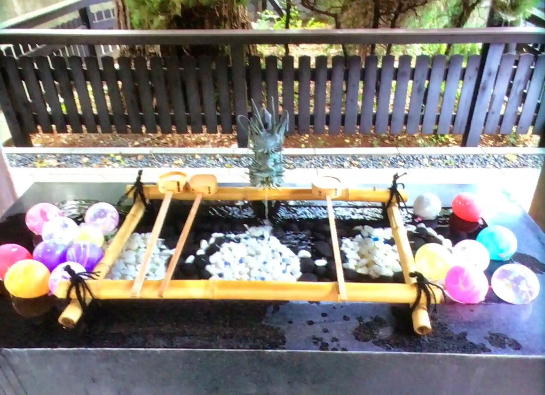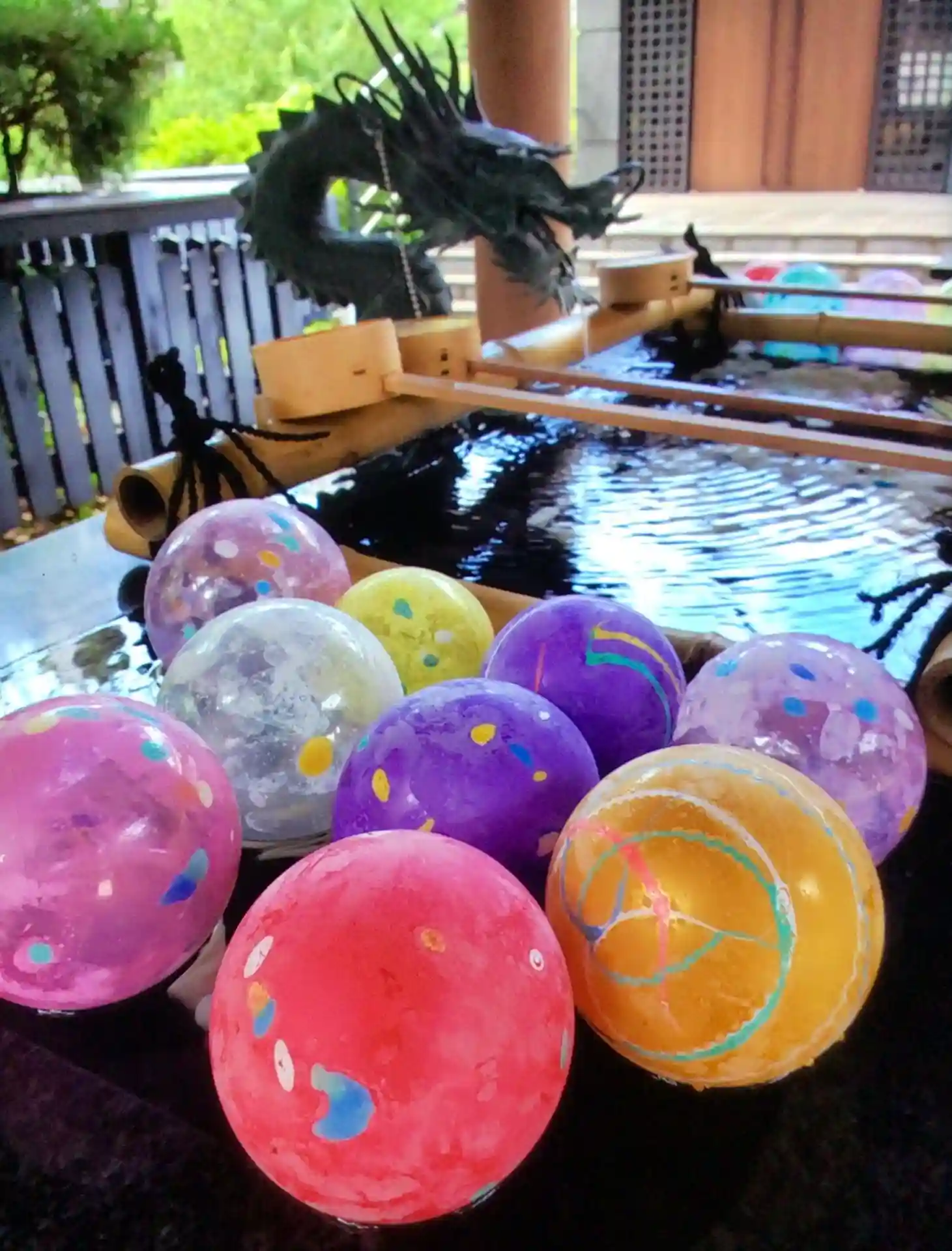 那智の石でのヨーヨーを描いた手水舎はそのまま、その上、左右にヨーヨーを浮かべています^_^