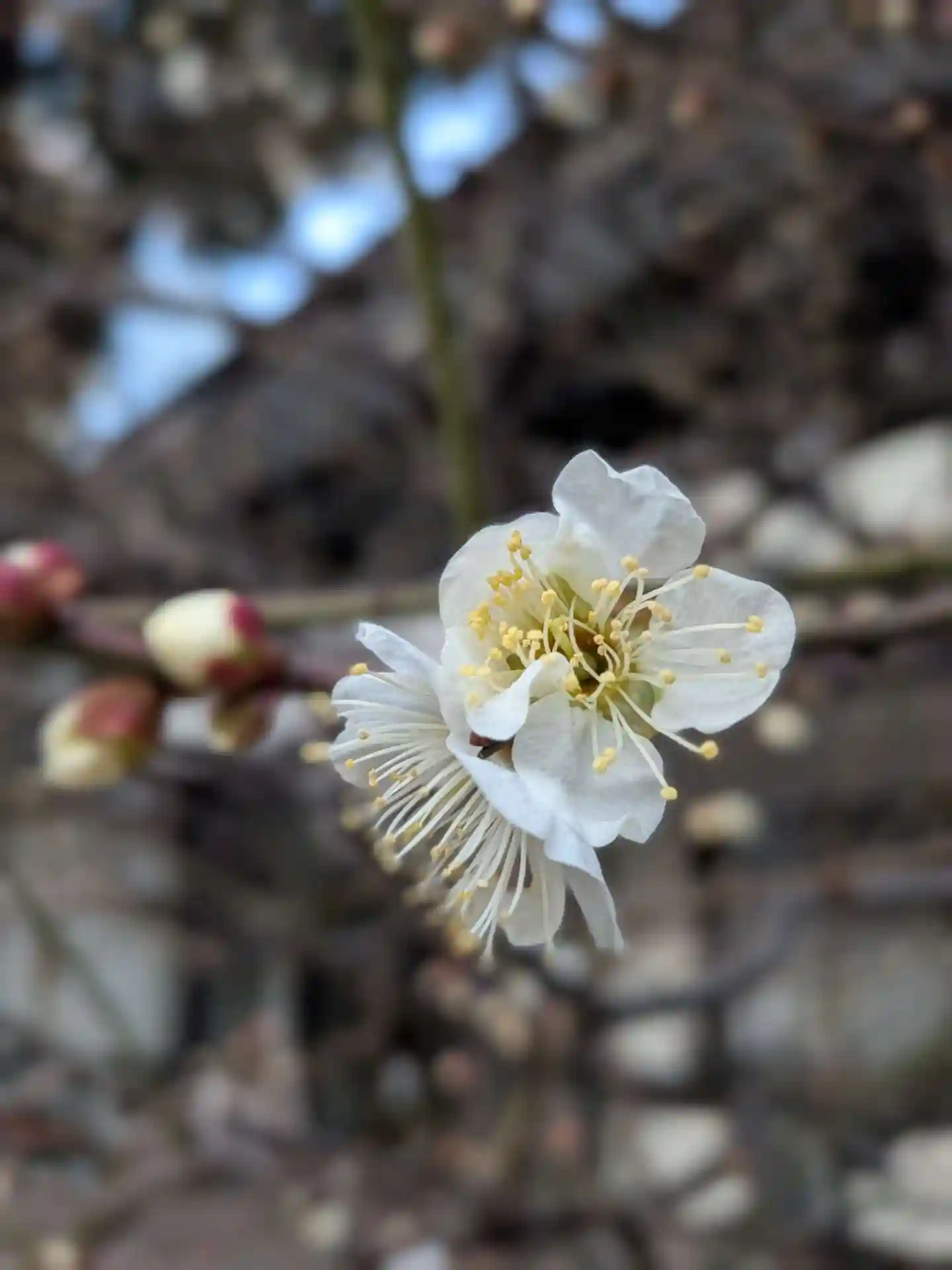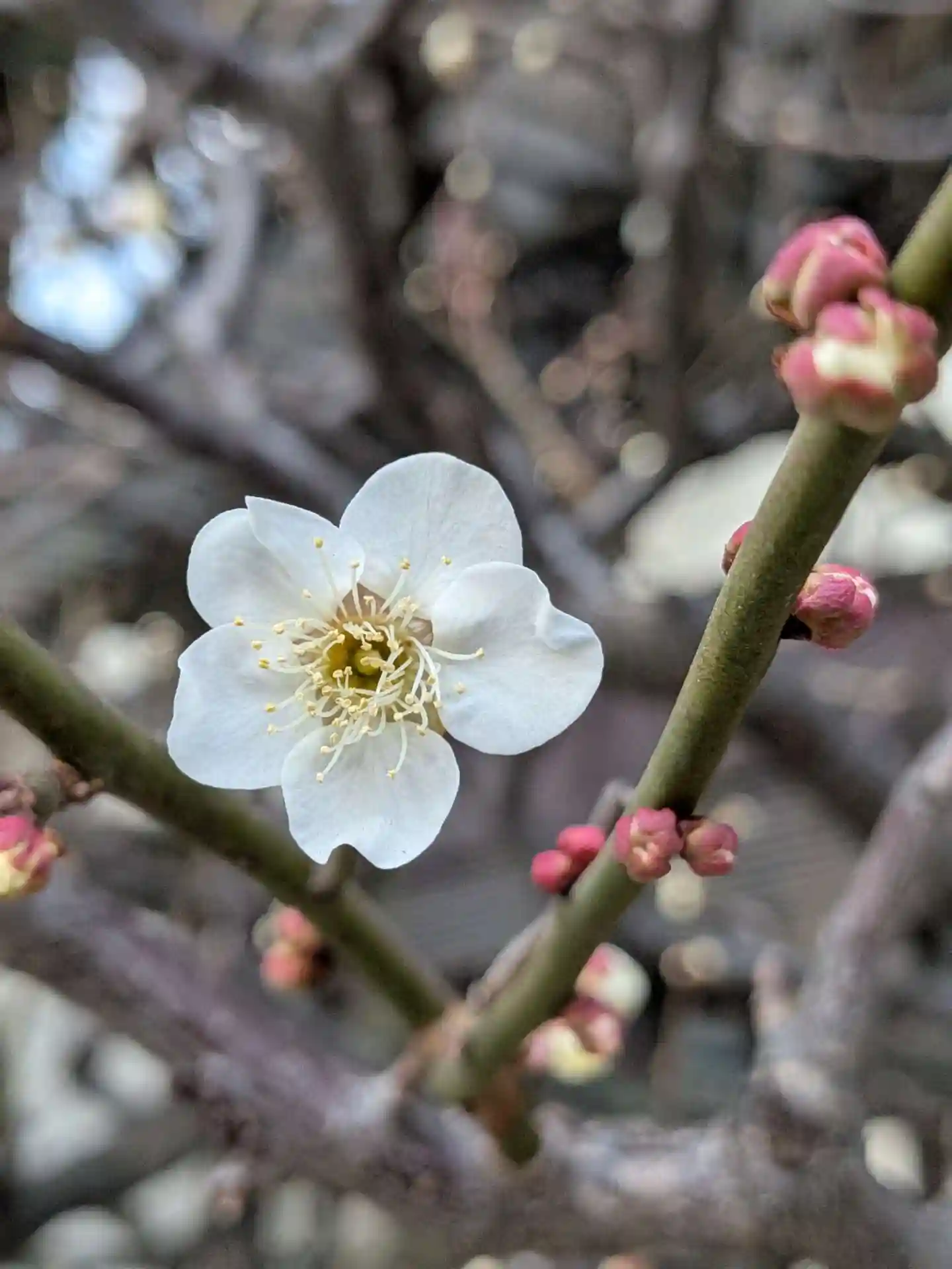 一本だけある白梅の木が少しづつ開花始まっています。