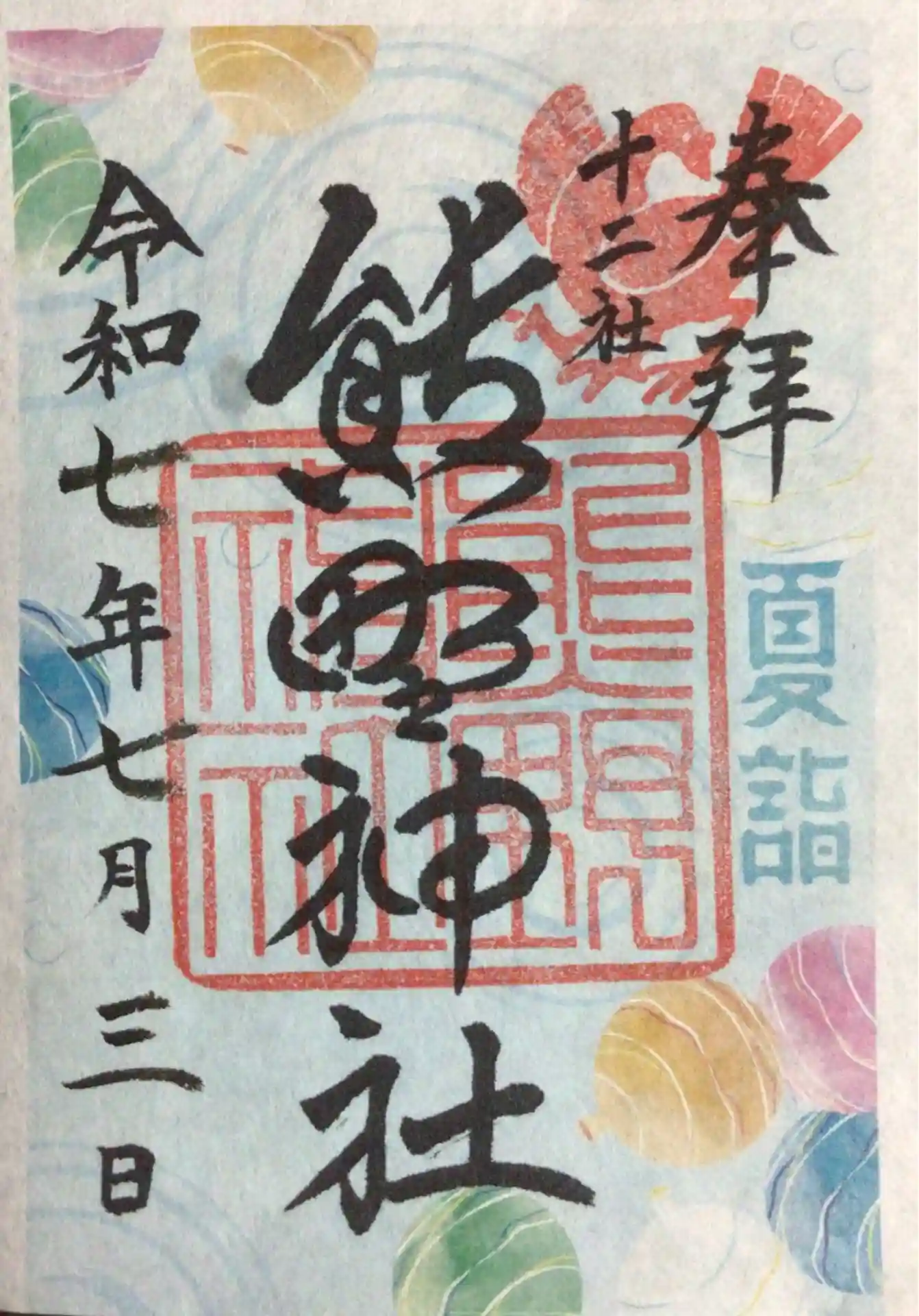 7/1〜7/31まで頒布の御朱印(書き置きのみ)