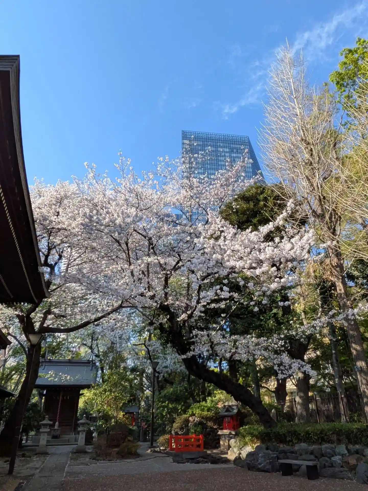 都会のビルと歴史ある神社のコントラスト