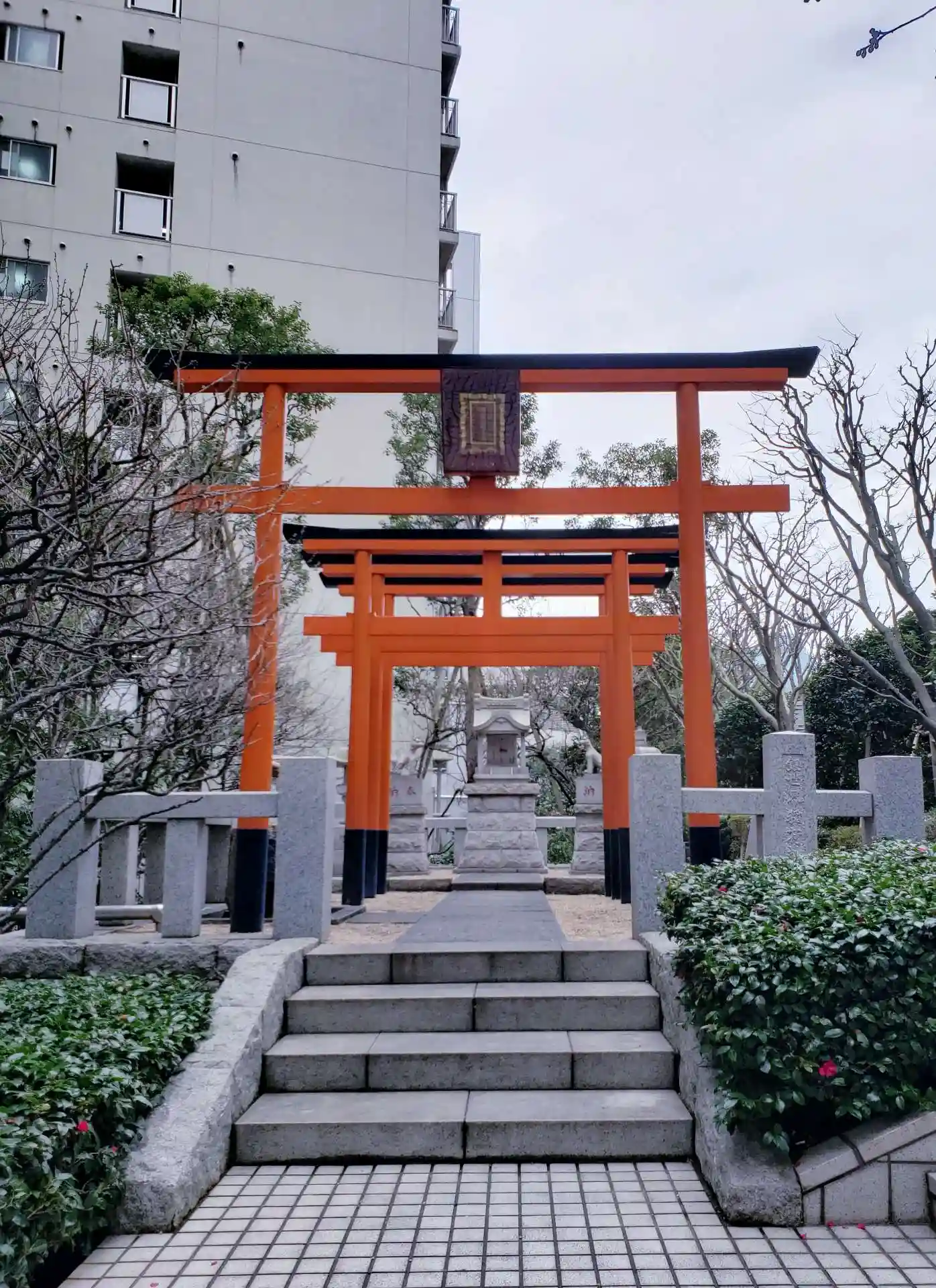 まだ咲いていませんが、階段両脇には梅の木があり、満開になると、赤い⛩️とのコントラストが素敵そうです。