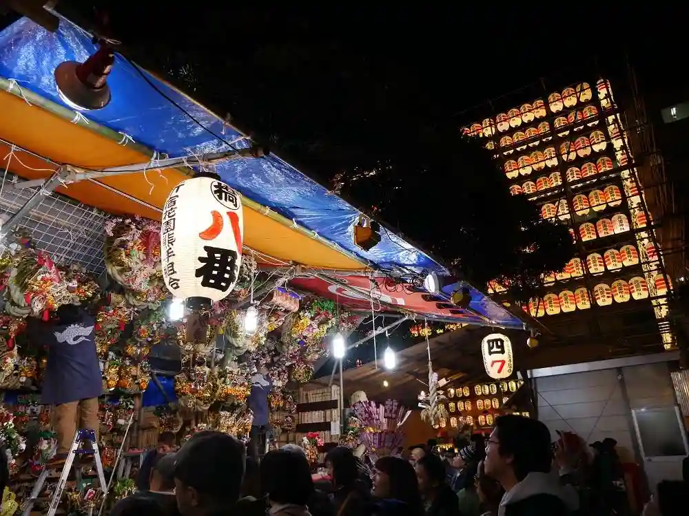 昨年の三の酉にお参りしました。熊手の店と露店が立ち並び、大変な人出でにぎわっていました。