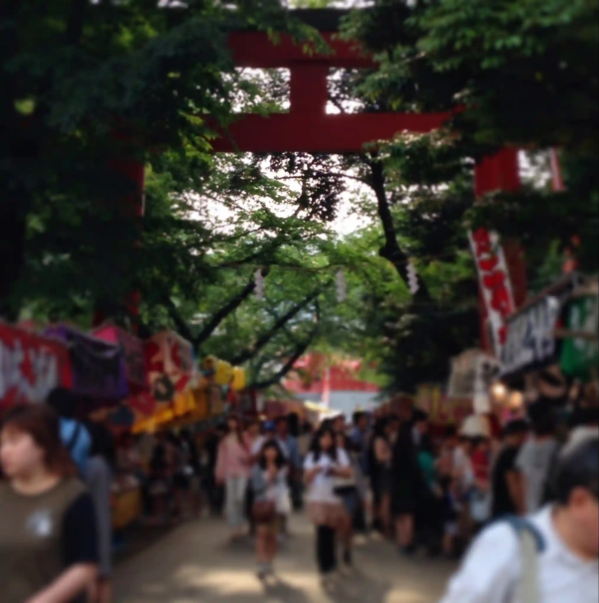 花園神社の境内に足を踏み入れると、普段の静かな雰囲気とは一変して、祭礼の賑わいが広がっていました。参道には屋台が立ち並び、香ばしい焼き物の匂いや甘い香りが漂います。子どもたちの笑い声や、掛け声を上げる店主の元気な声が混ざり合い、境内全体が生き生きとした空気に包まれています。朱色の鳥居をくぐり、手水舎で手を清めると、喧騒の中にも神聖な空気が混じっているのを感じました。普段は静かで落ち着いた空間ですが、祭礼の日は人々の熱気や喜びが境内に満ち、まるで神様もその活気を喜んでいるかのようです。