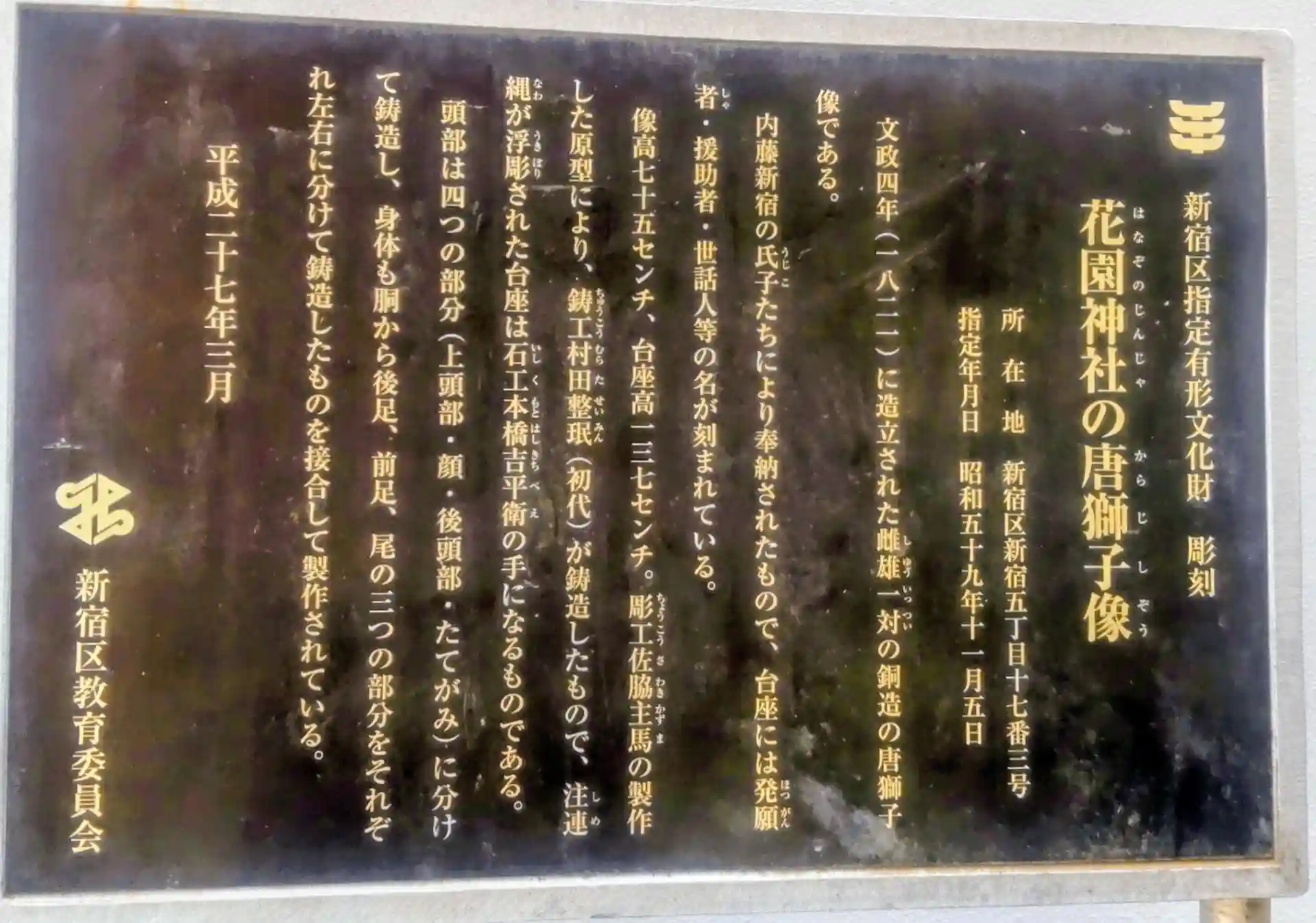 新宿区指定文化財の唐獅子