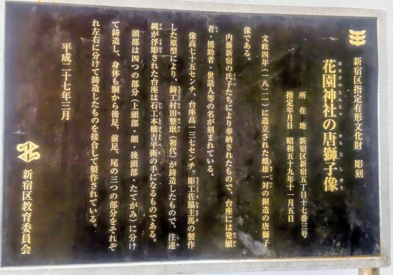 新宿区指定文化財の唐獅子