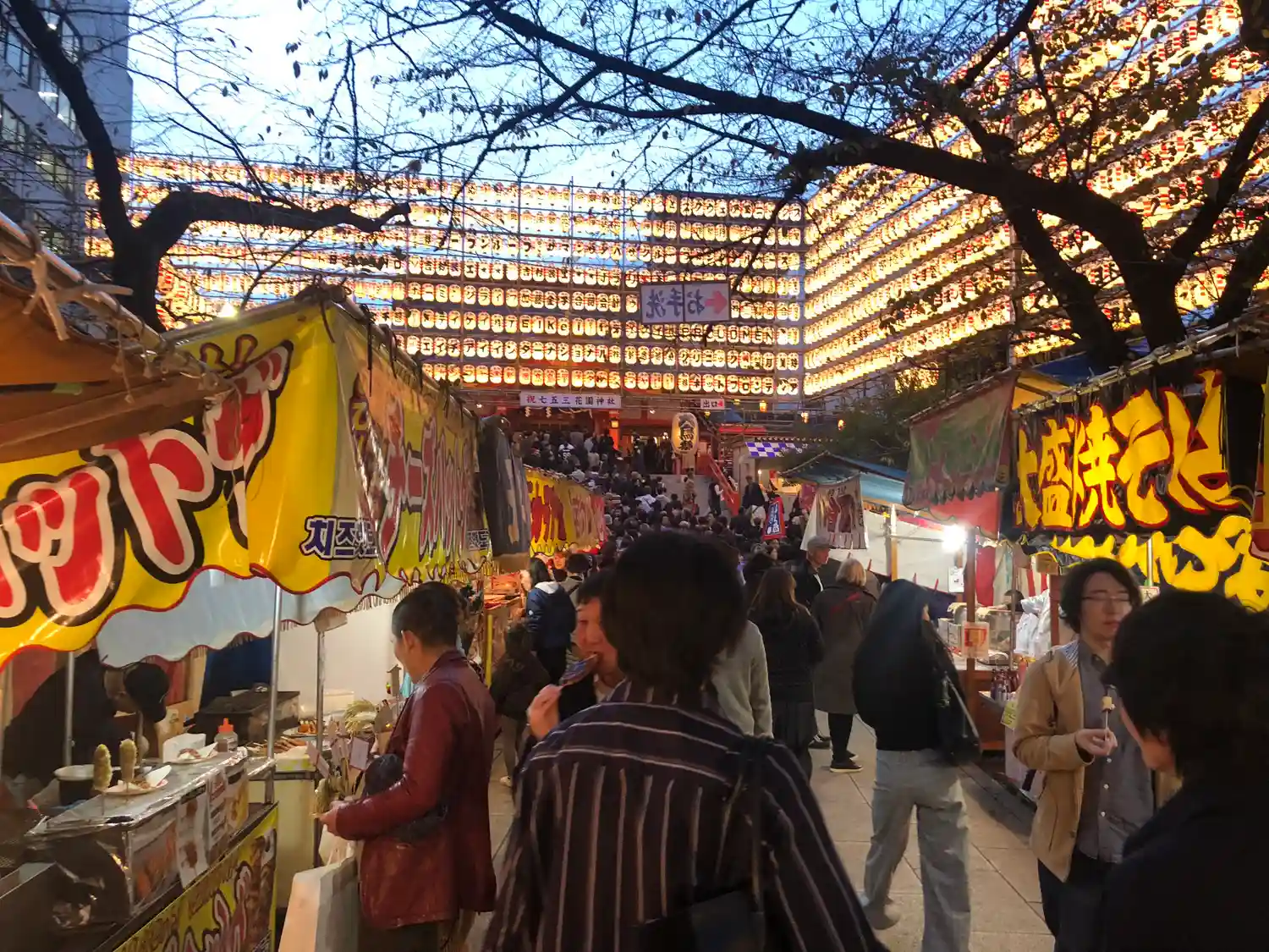 新宿駅といえばまず出てくるのが花園神社。昼間も夜も人がたくさんいます。一度終電を逃した後に花園神社…