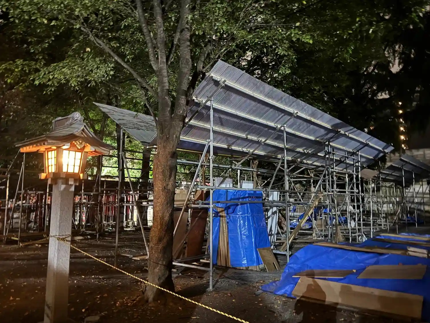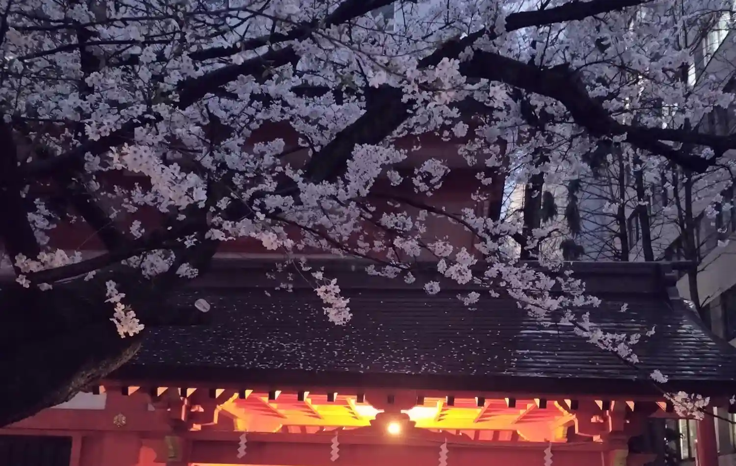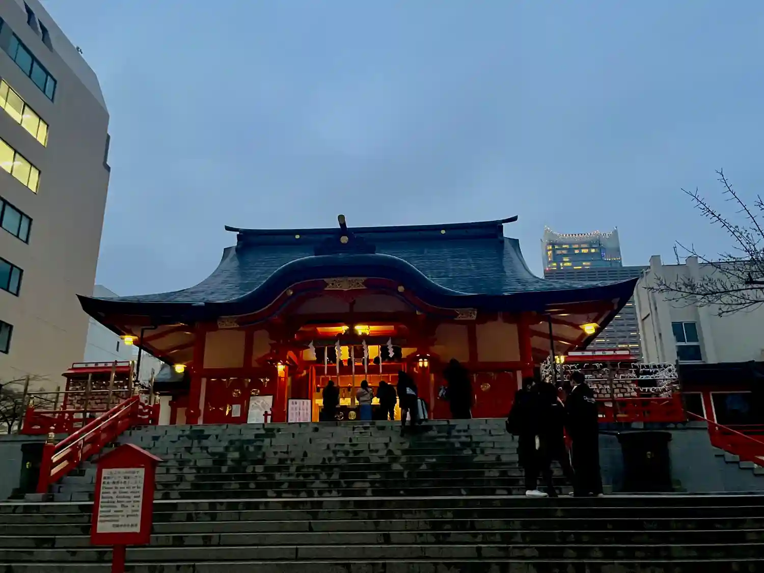 神楽殿はライトアップこそされていないものの、日が落ちても見事な華やかさ✨