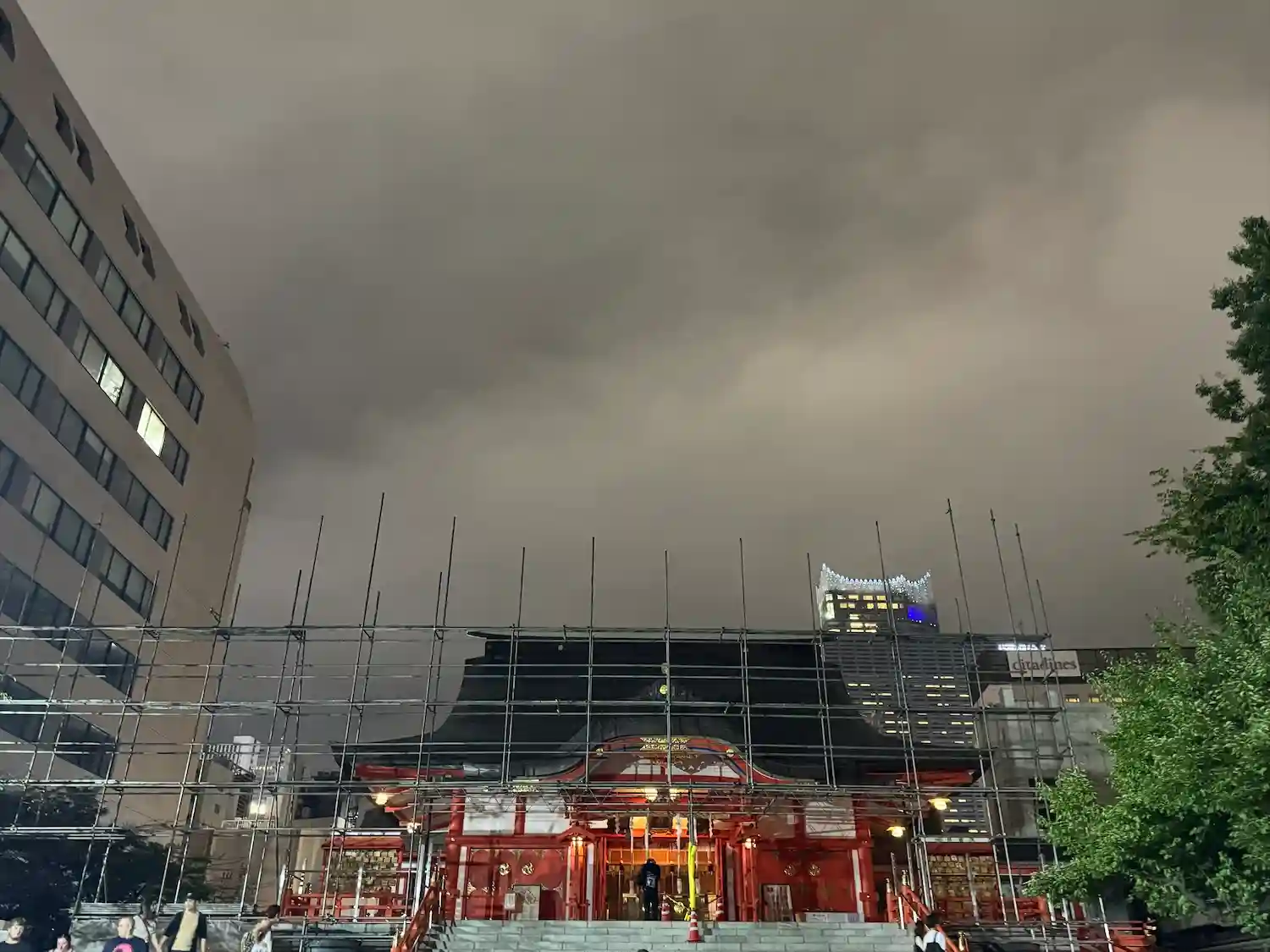 夜なのに境内まだそこそこ人がいます。