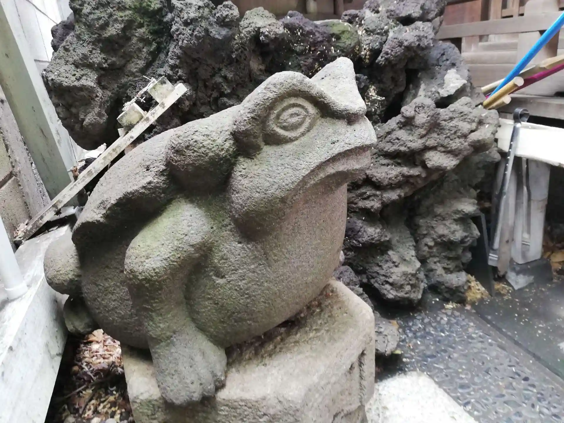 弁財天様の手前にある大きなカエルの像。