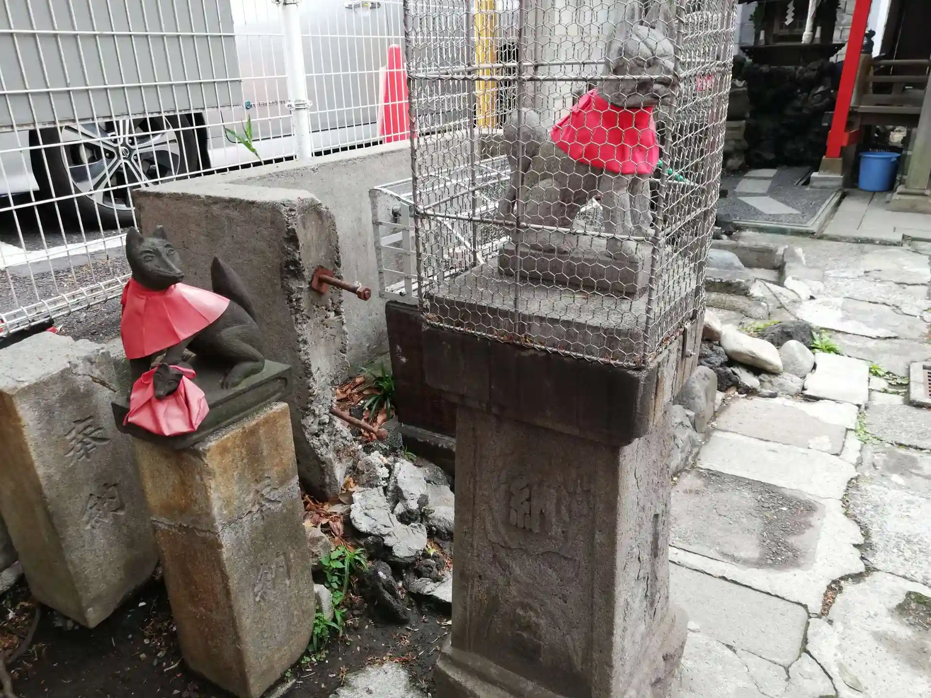 古いお狐様の下に大正12年2月とありますが、大きさがあっていないので同年9月の関東大震災や空襲などで一部が損壊したのかもしれません。