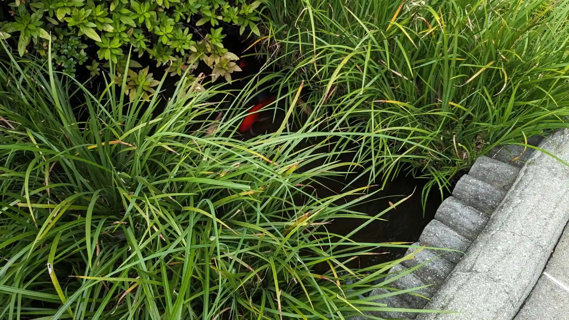 こんな屋上に神社があることも驚きですが鯉が泳ぐ池まであるのもすごい。