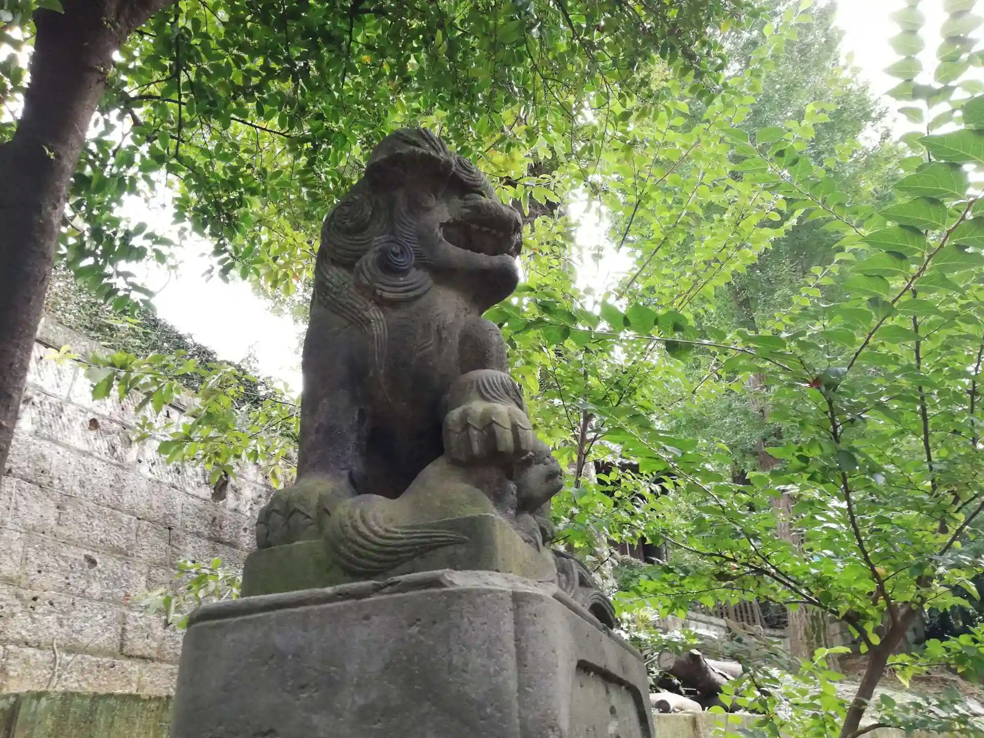 見ているだけで笑いがうつりそうな狛犬さん。