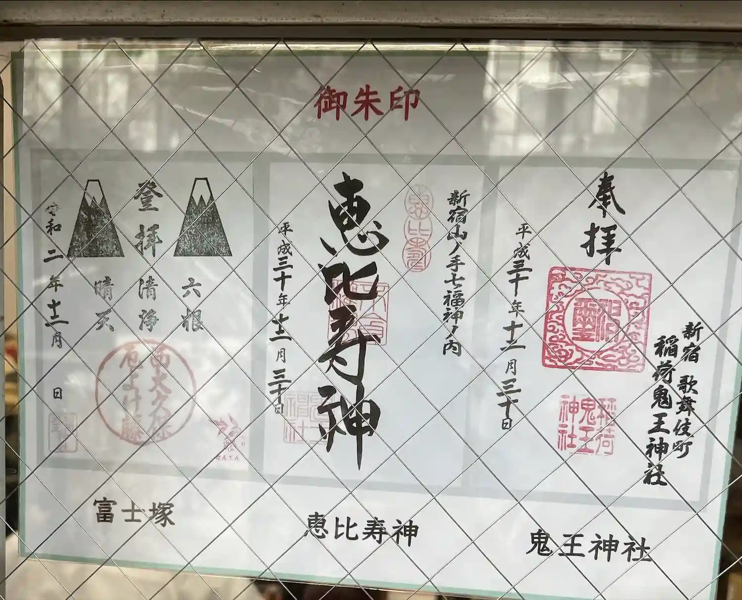 現在頂けれ朱印は3種類で、富士塚の朱印は書置きとなります。