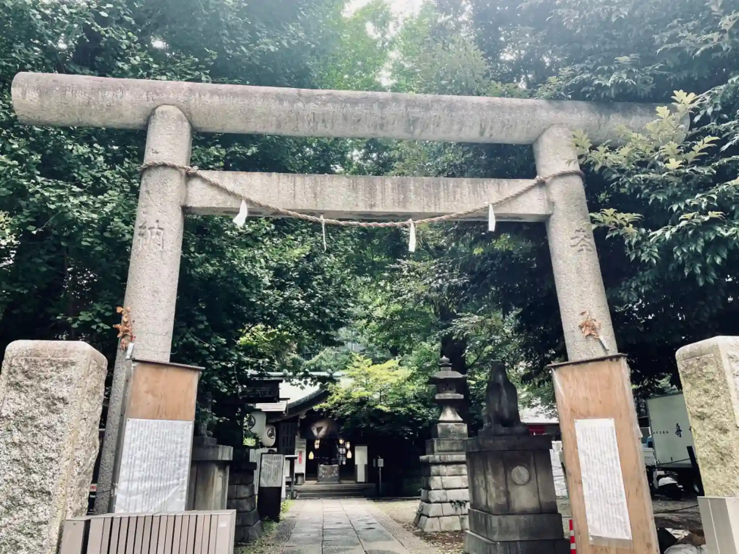 提灯の陰に社号標があります