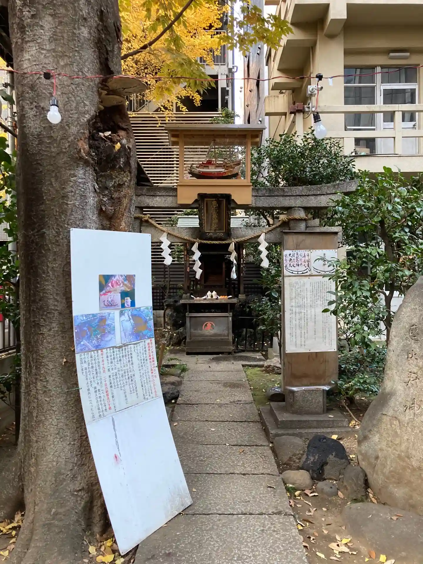 ホテルやビルが立ち並ぶ中に鳥居を見つけまし…
