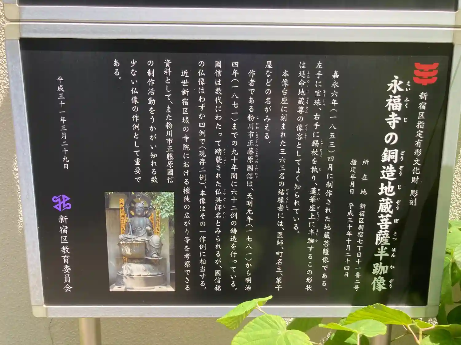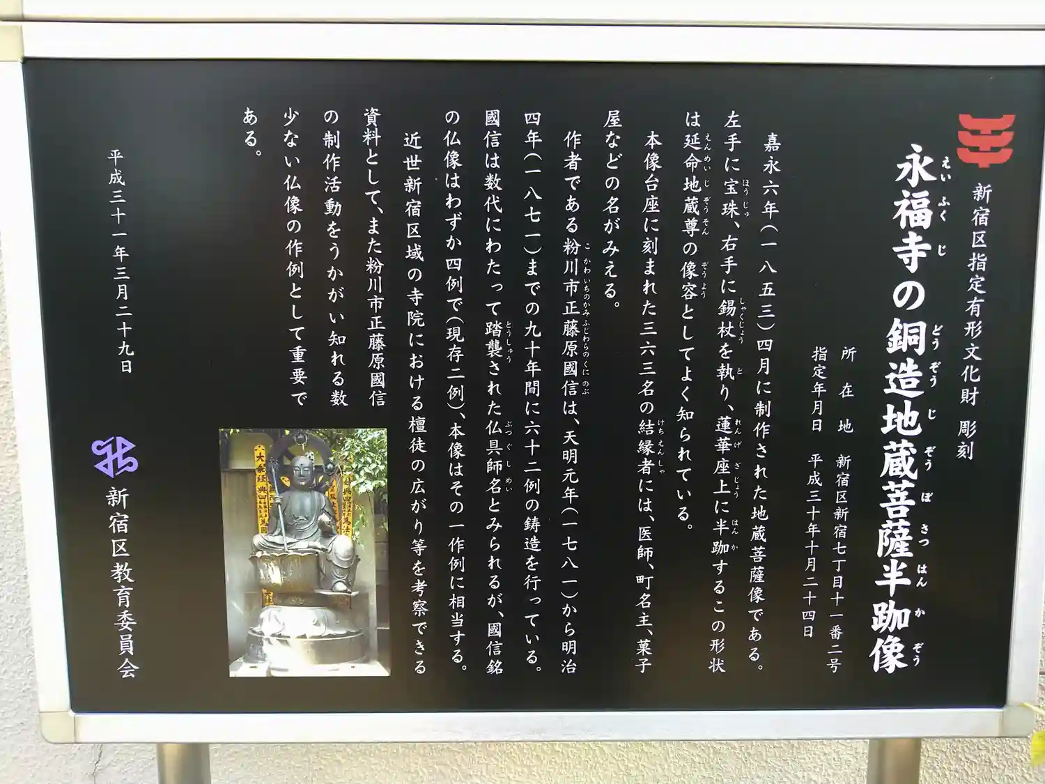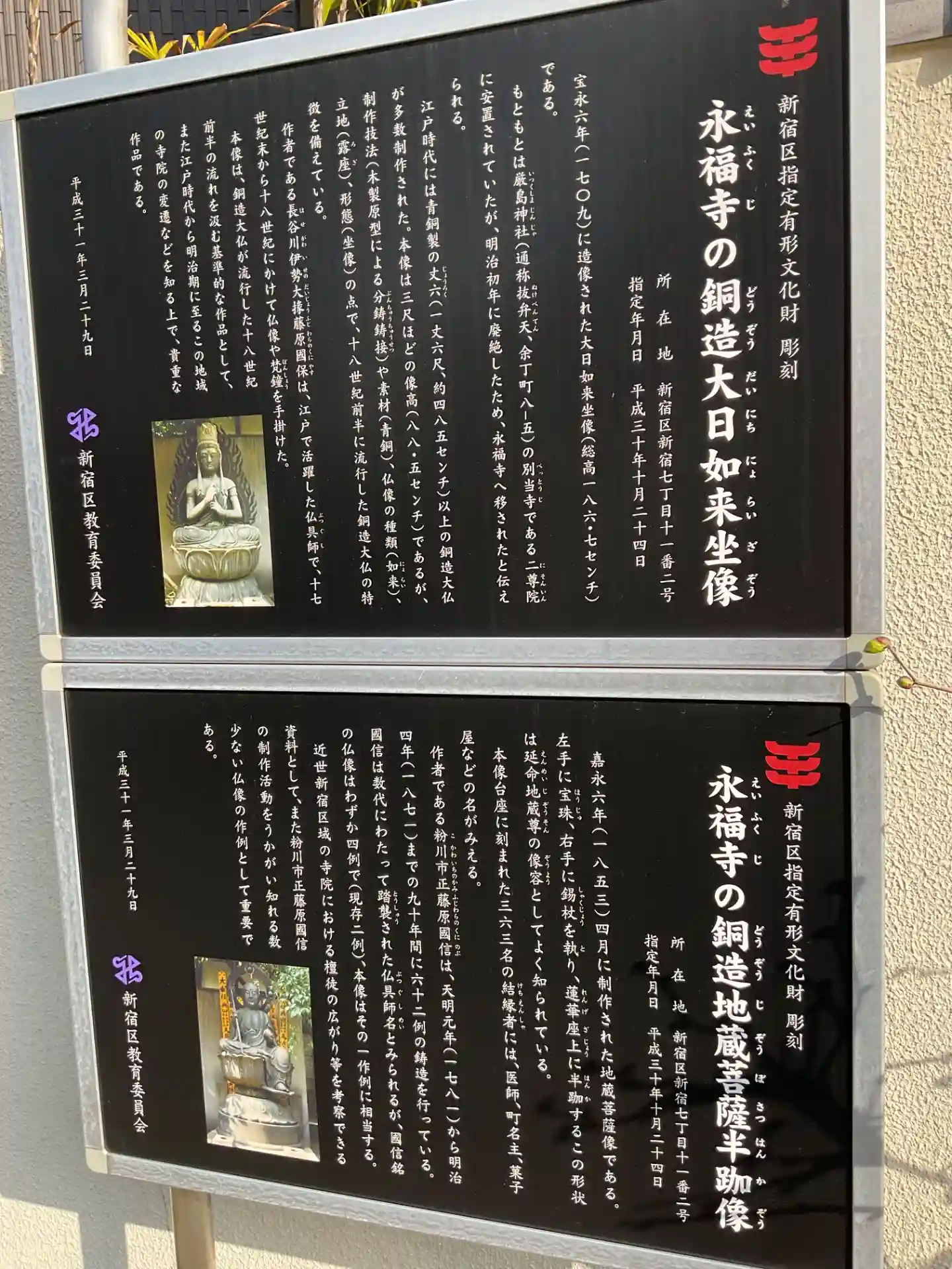 本堂横に銅造地蔵菩薩半跏像と銅造大日如来坐像があります。