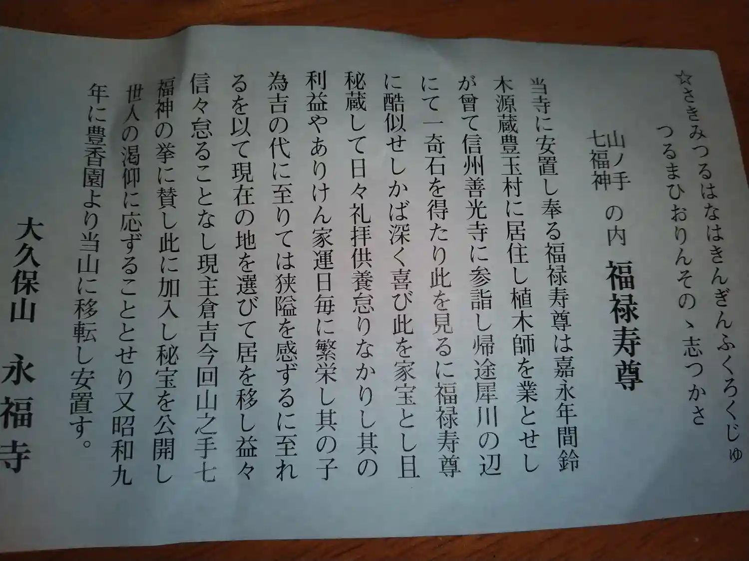 大久保山永福寺通常御朱印