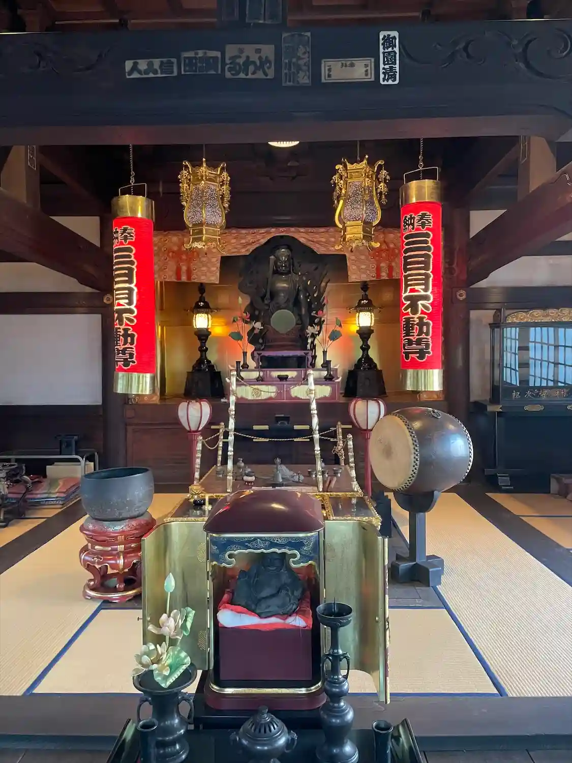 境内には江戸に入る6本の街道の入り口にそれぞれ安置された地蔵菩薩像(江戸六地蔵)の第三番がある。また、この寺には閻魔像・奪衣婆像が安置されており、江戸時代から庶民に信仰されてきた。現在も毎年7月15日・16日の縁日に御開扉されている。他に新宿山ノ手七福神の一つである布袋尊像、真っ白に塩を被った姿が特徴の「塩かけ地蔵」などがある。