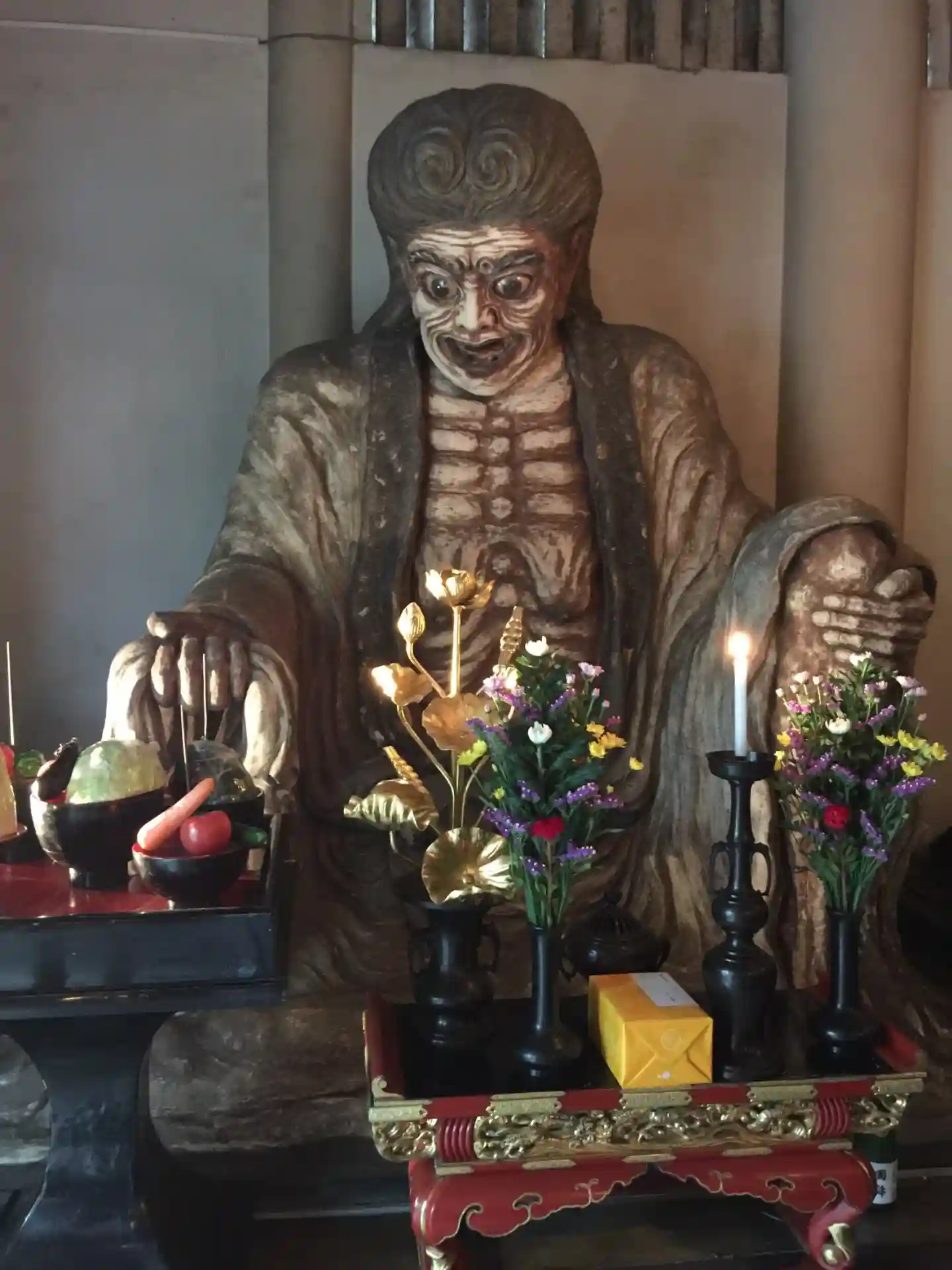 焔魔堂の前でお線香をあげて中に入ると、巨大な閻魔様が😲