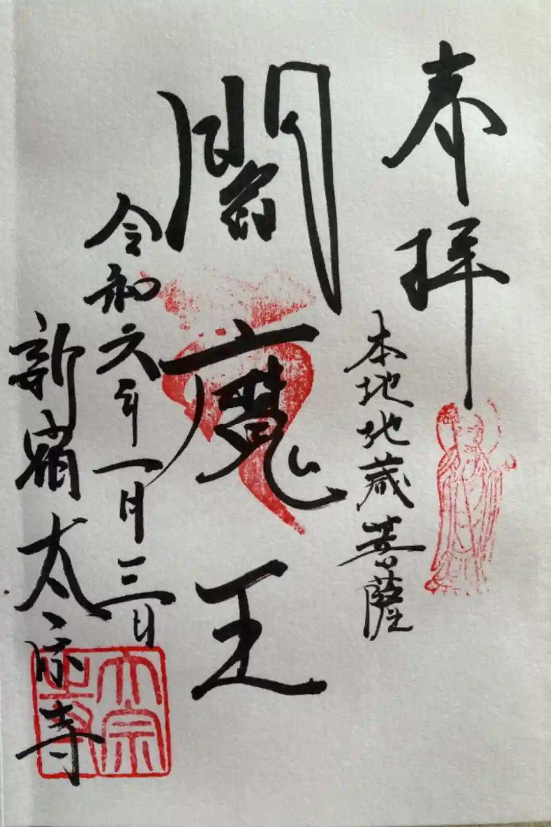 閻魔王の御朱印。本地地蔵菩薩、地蔵尊の絵