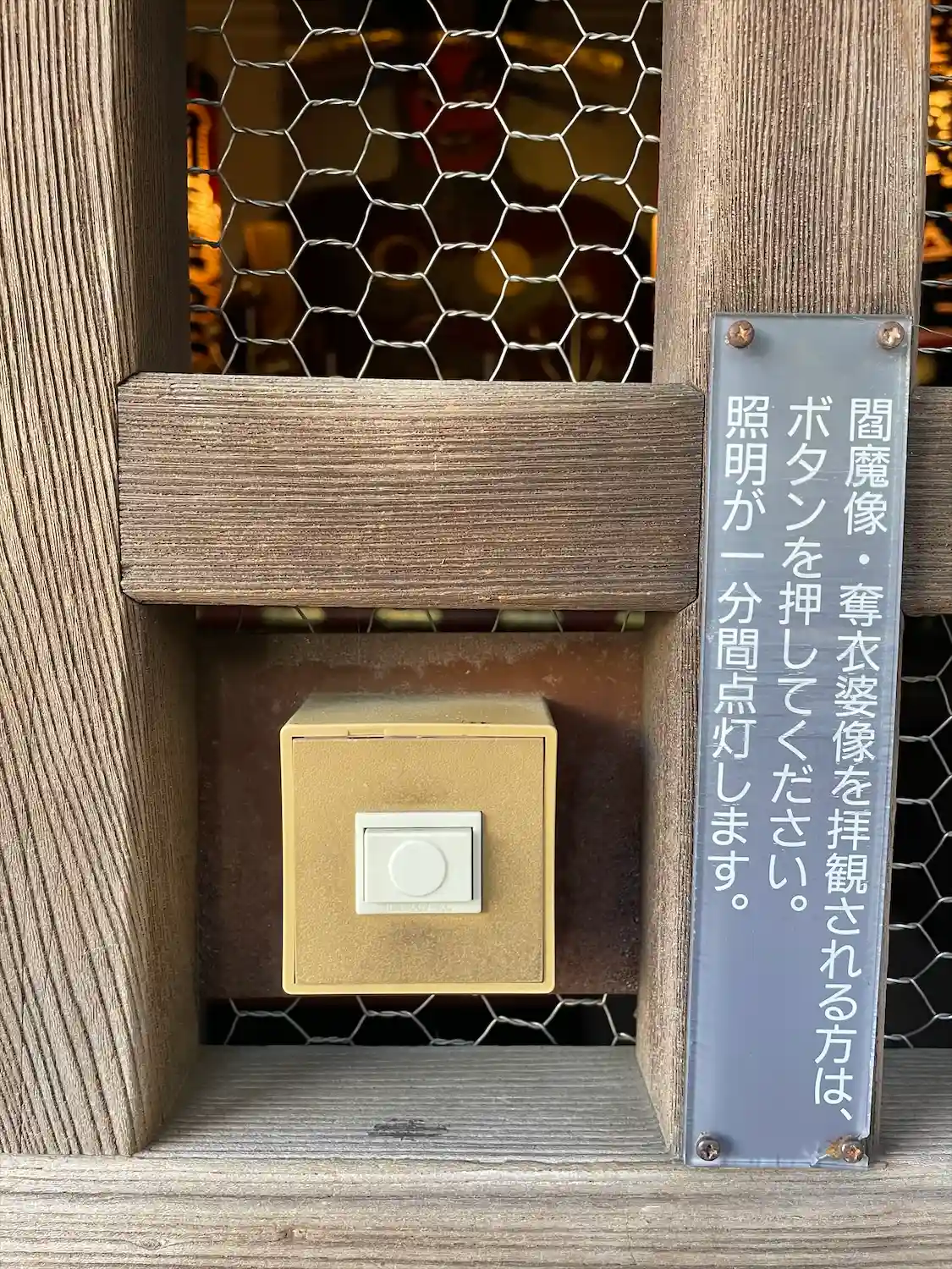 お堂のボタンを押すと中の照明が点き、閻魔さまのお姿が見えます。塩かけ観音…