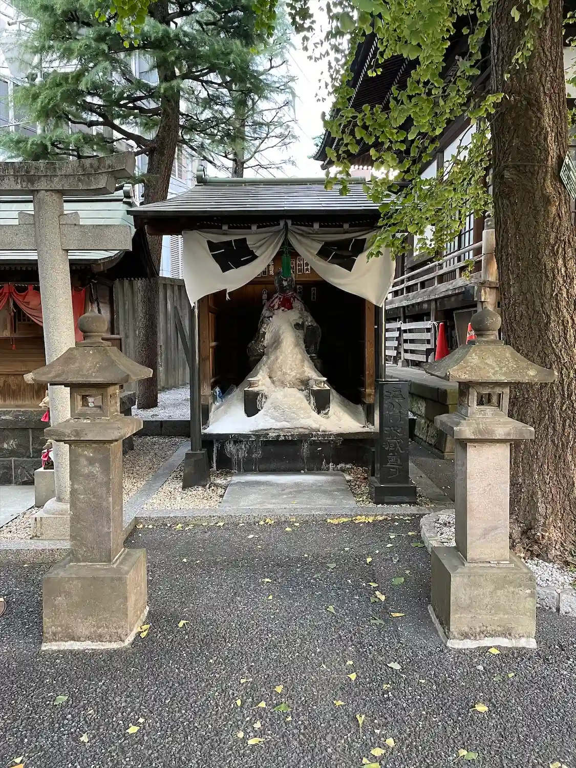 願掛けの返礼に塩をかけるそうで、塩まみれ😳
