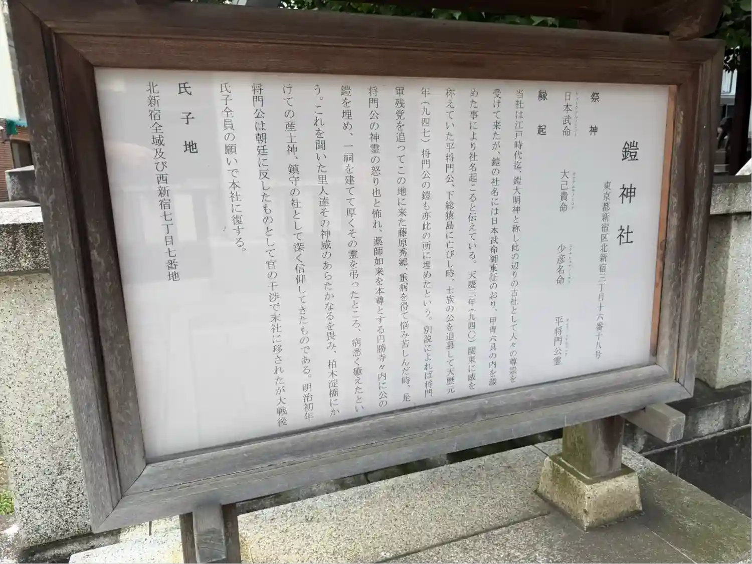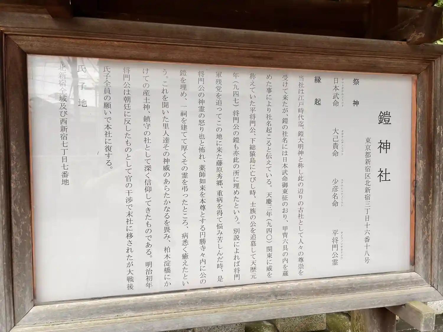 鳥居, 主祭神は日本武命・大己貴命・少彦名命・平将門公