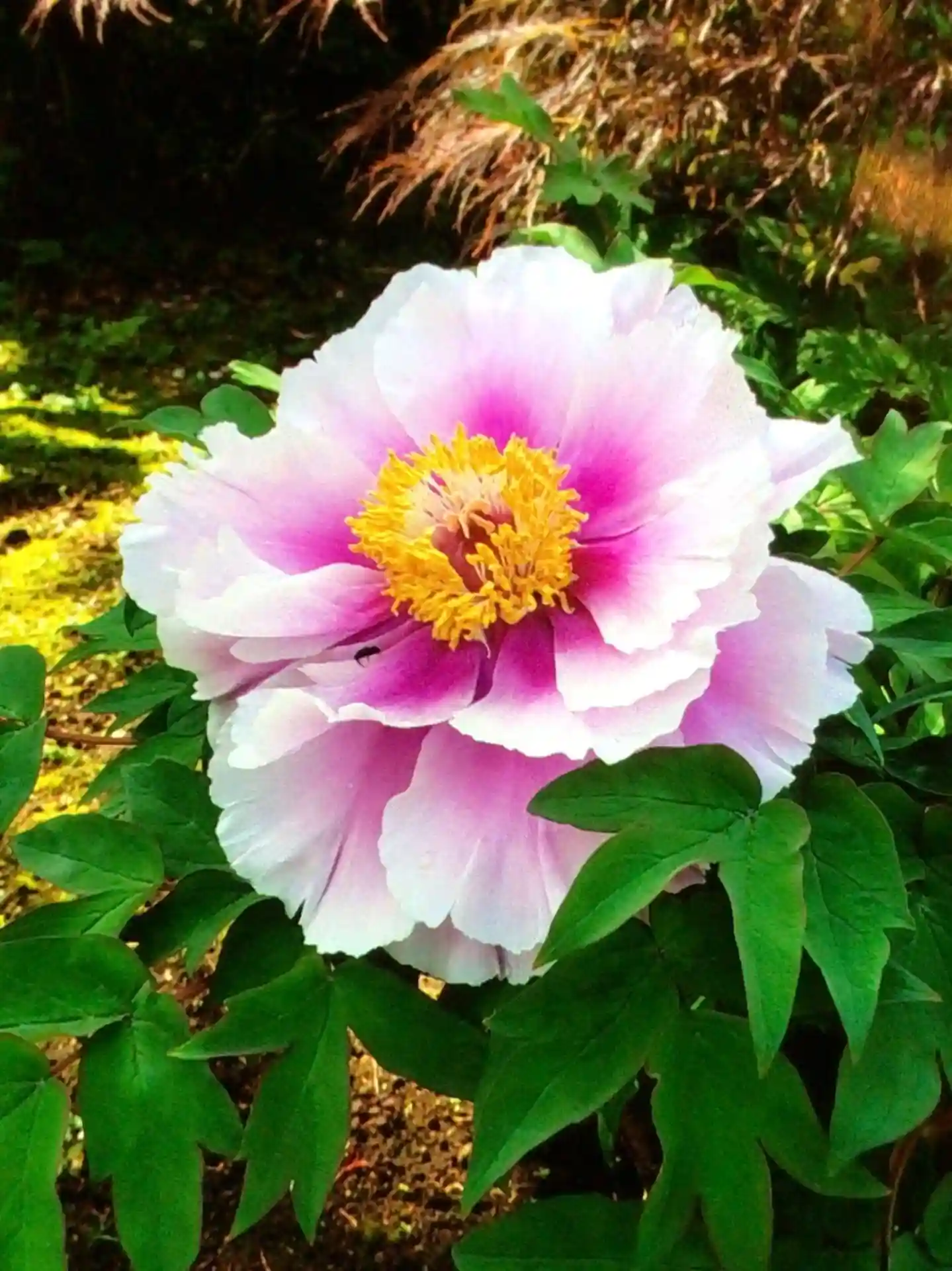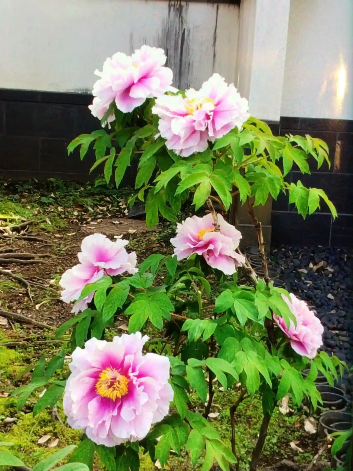 山門手前の牡丹は殆ど花弁が落ちて,時間差で咲いた牡丹が一本のみ咲いていました。